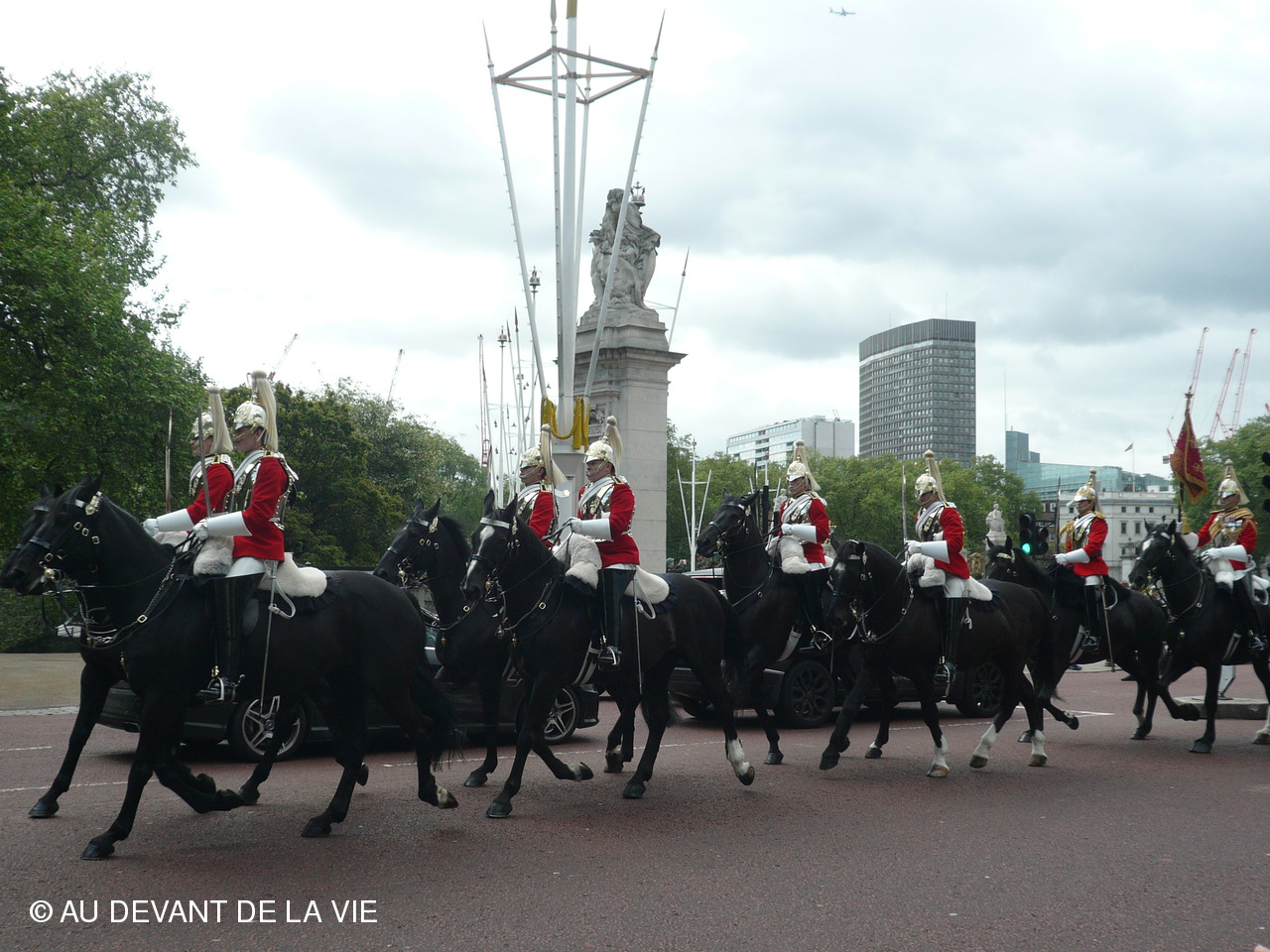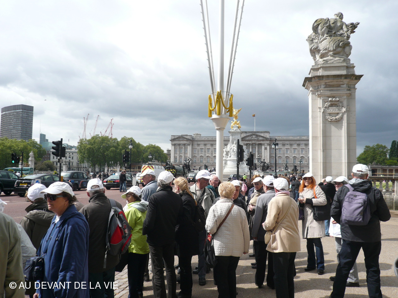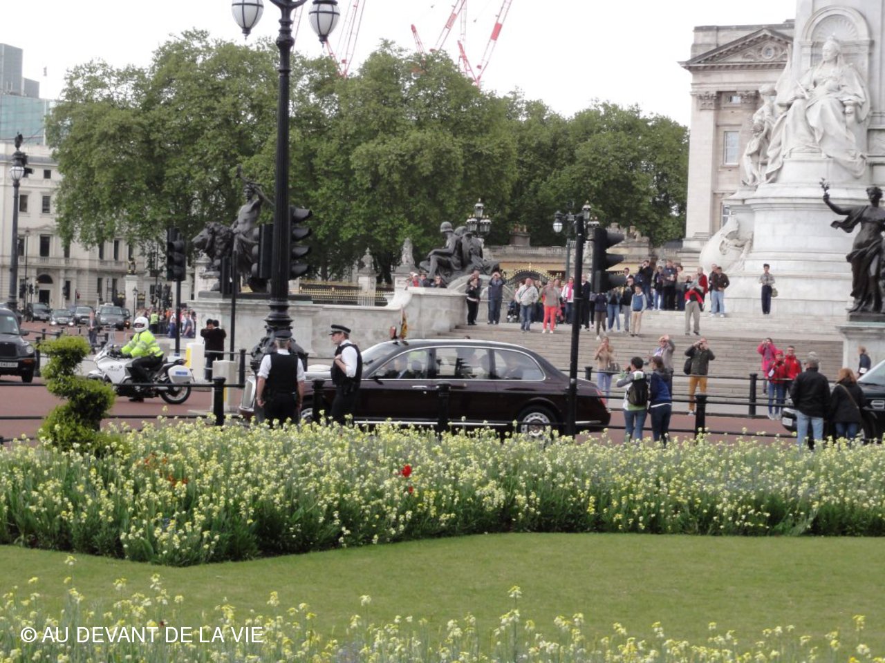 Le Palais de Buckigham et la sortie de la Reine en voiture