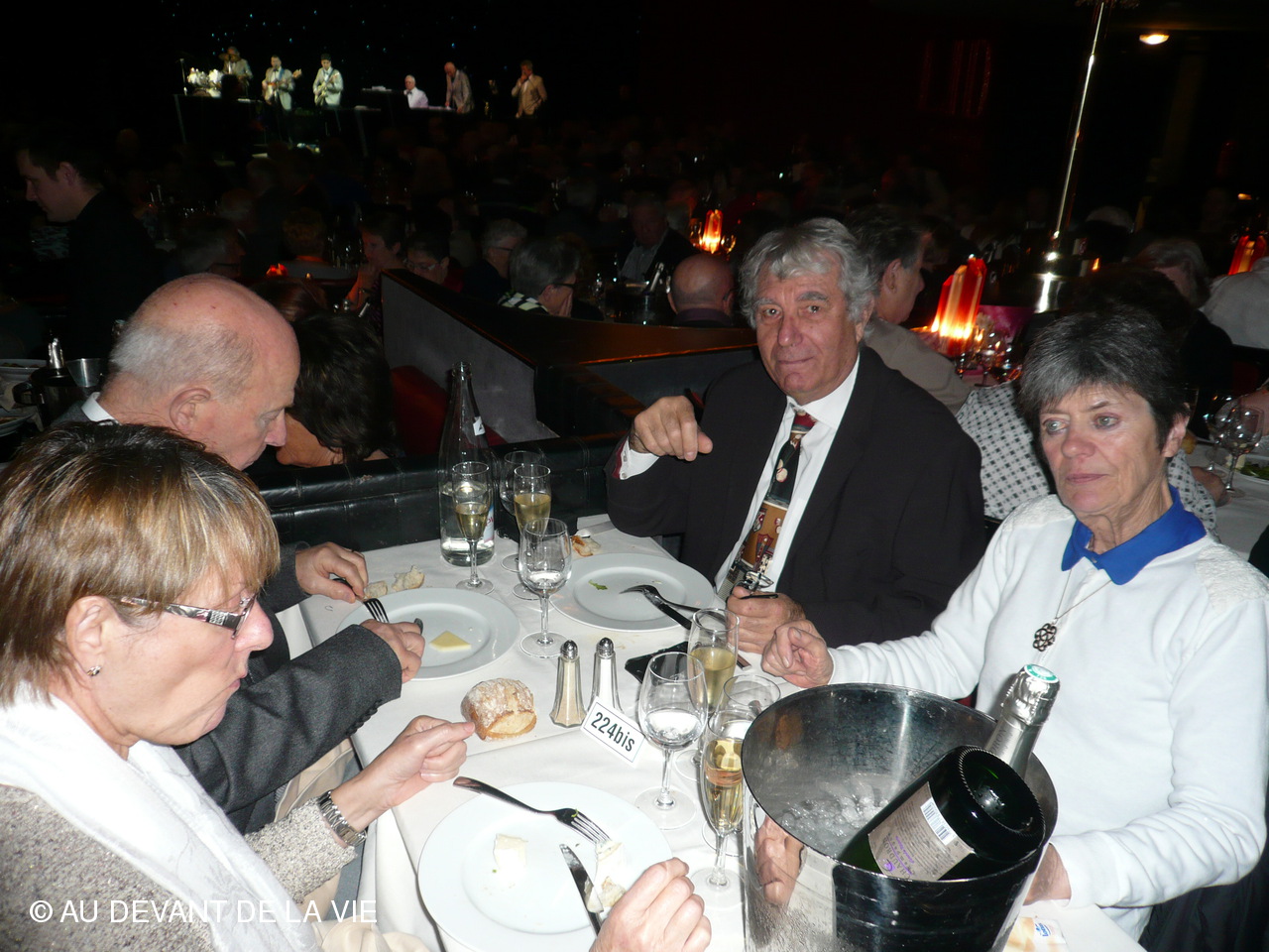 Malheureusement par manque de places certains n’ont pu être présents; il faut dire que cette journée célébrant les fêtes de Noel s’est avérée fort agréable d’autant qu’un repas gastronomique au champagne précédant le spectacle a favorisé la mise en condition des participants.