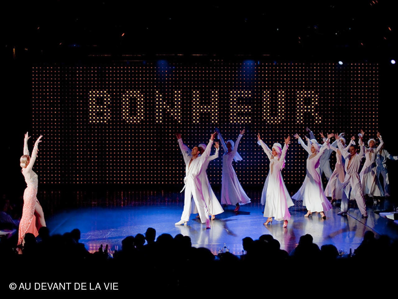 Pour la première fois Au Devant de La Vie a dû affréter deux cars pour permettre au plus grand nombre de ses membres d’assister au grand spectacle « BONHEUR » du LIDO à PARIS .