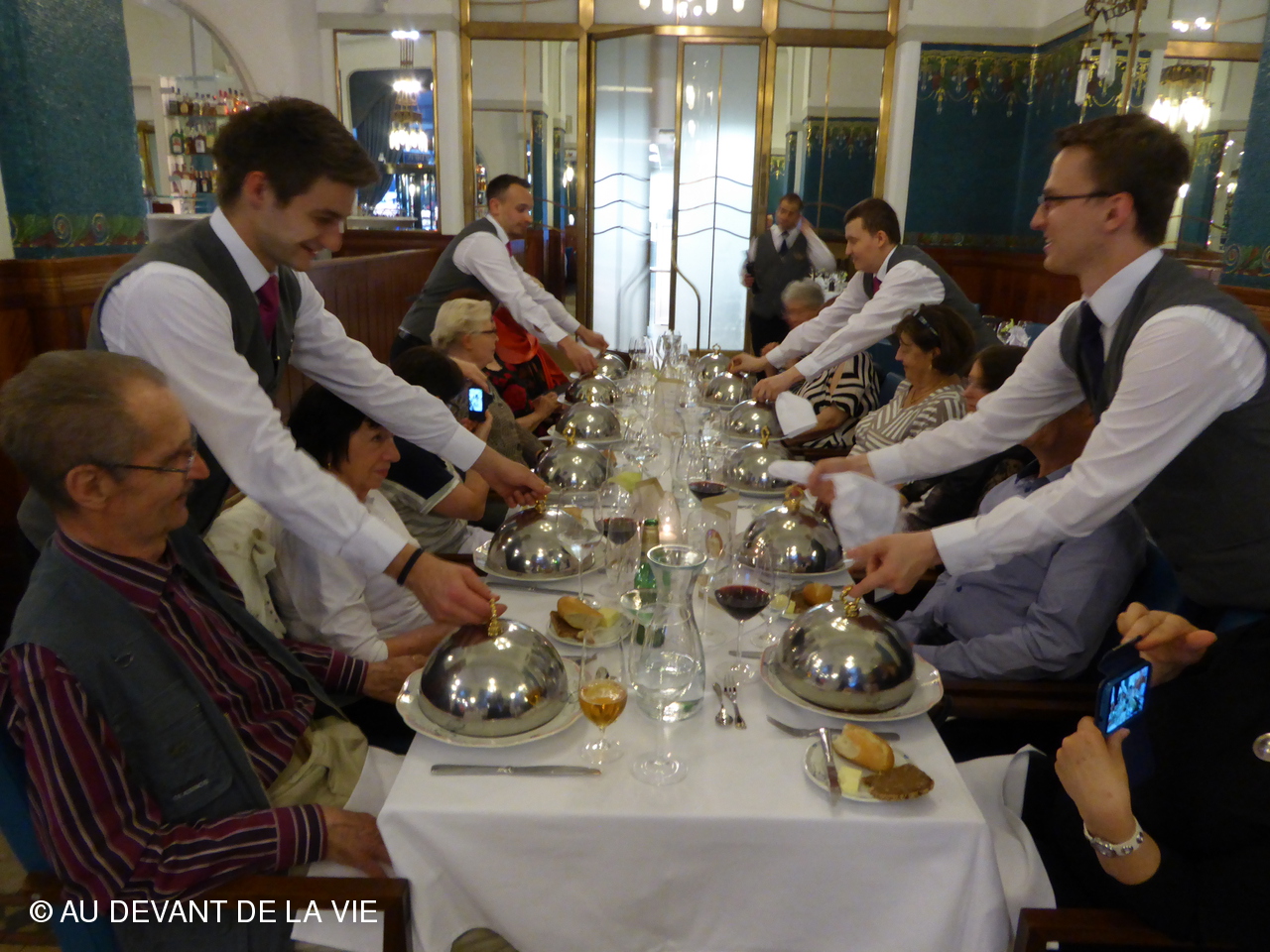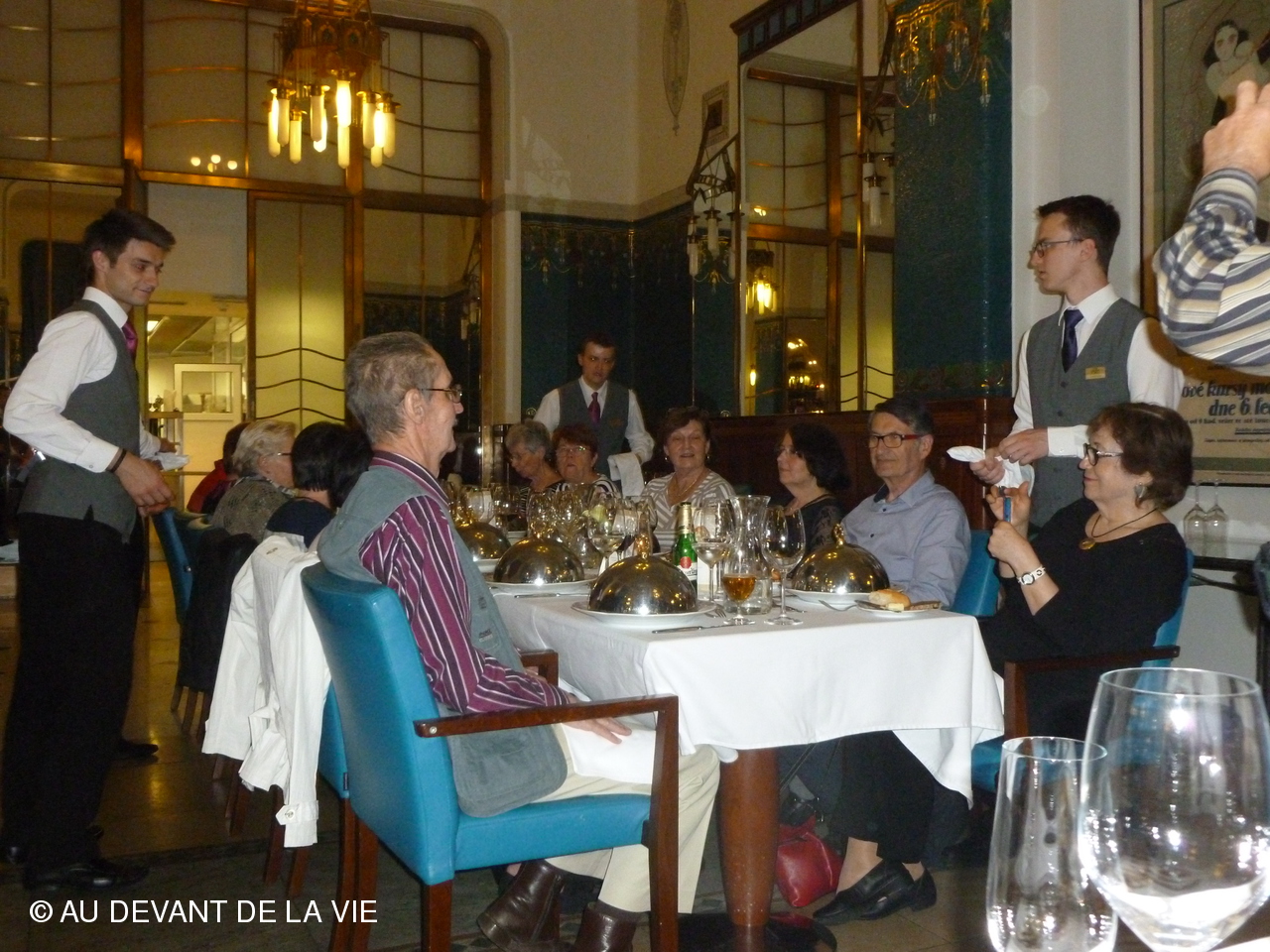 Dîner dans une brasserie avec orchestre.