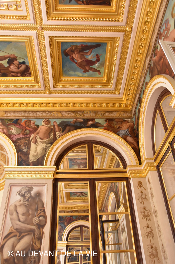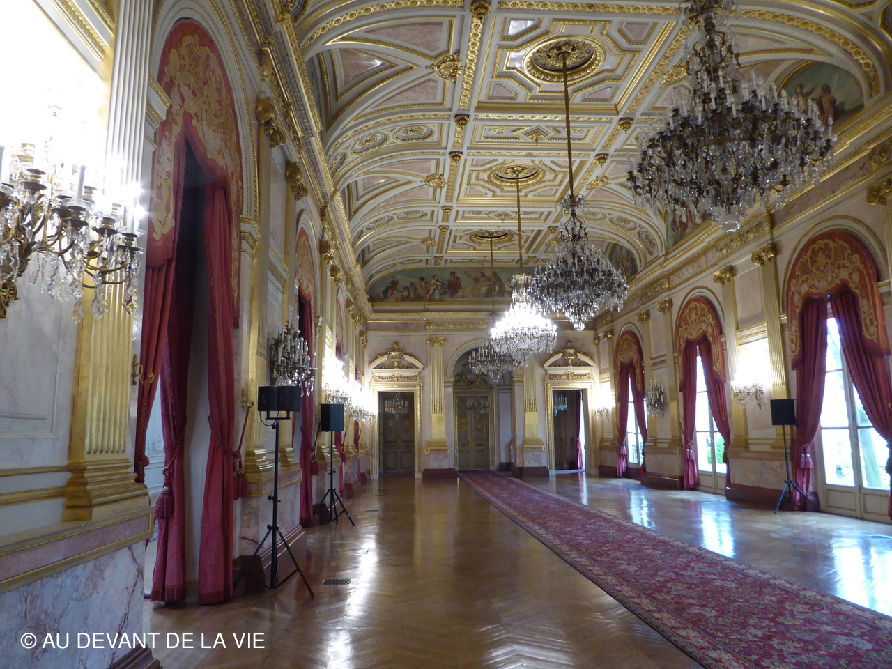 L'étonnement est présent dès la galerie des Fêtes, aux plafonds peints et aux murs couverts de dorures. Elle relie le Palais-Bourbon proprement dit et l’hôtel de Lassay où loge le président de l’Assemblée. La porte centrale que l’on aperçoit au fond donne sur le « Cabinet du Départ » où le Président s’installe en attendant qu’on vienne le chercher pour présider une séance.