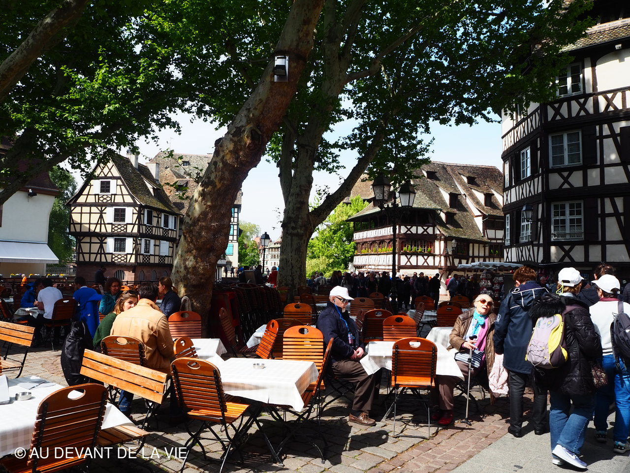 Enfin arrivée à Strasbourg pour une visite de la ville en car avant de rejoindre à pied le centre vile : «la Petite France » quartier pittoresque du vieux strasbourg avec ses maisons à colombages, ses cours intérieures.