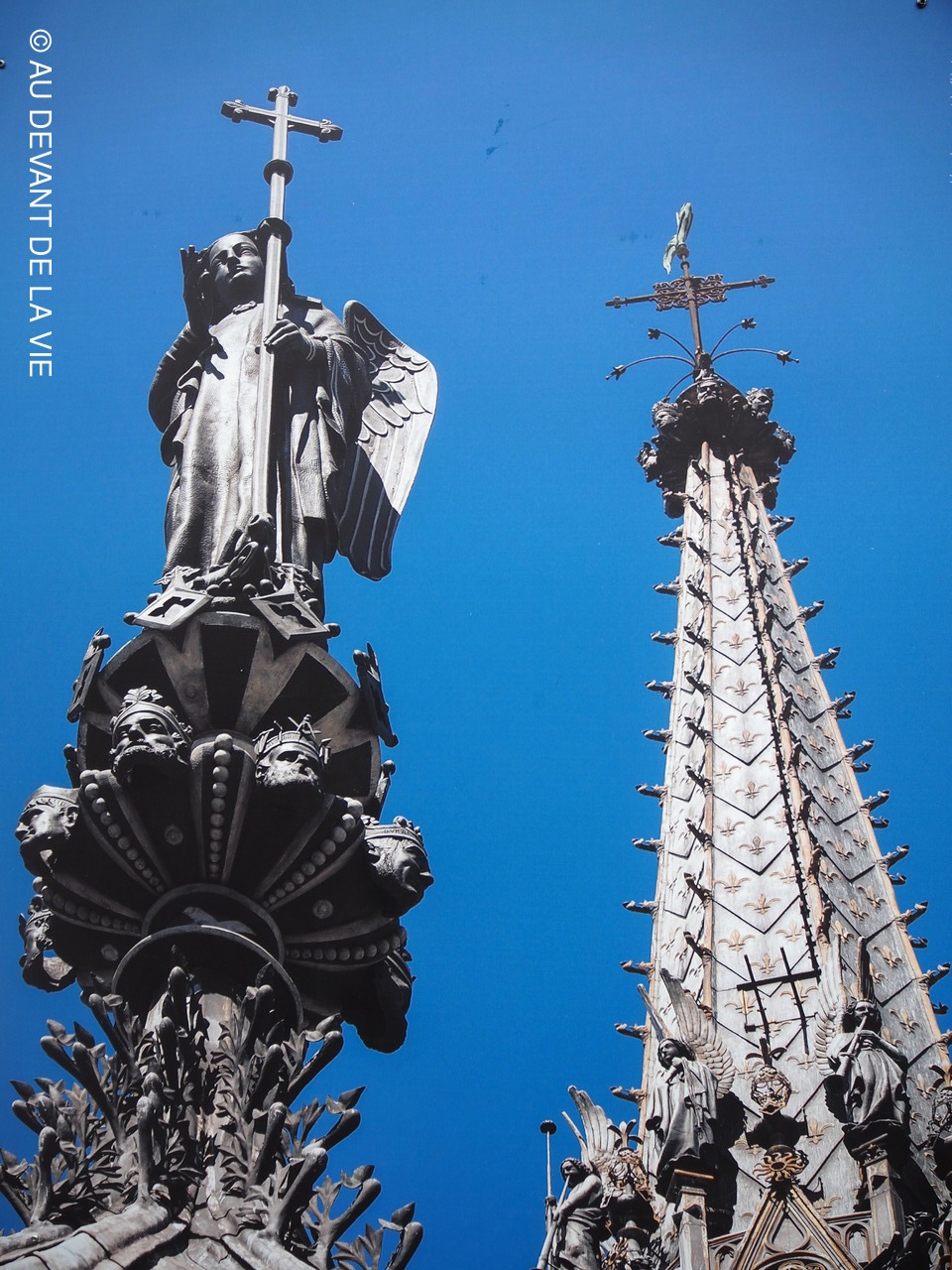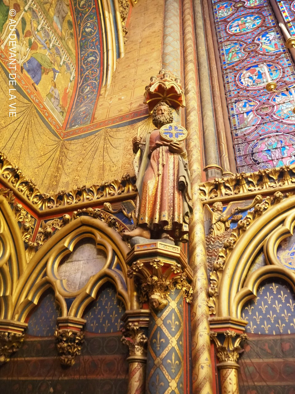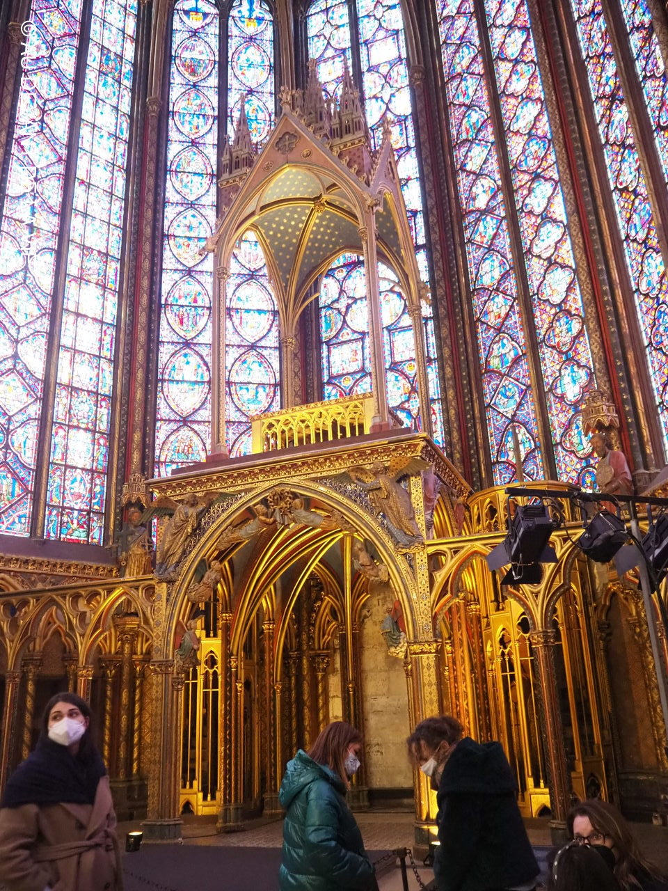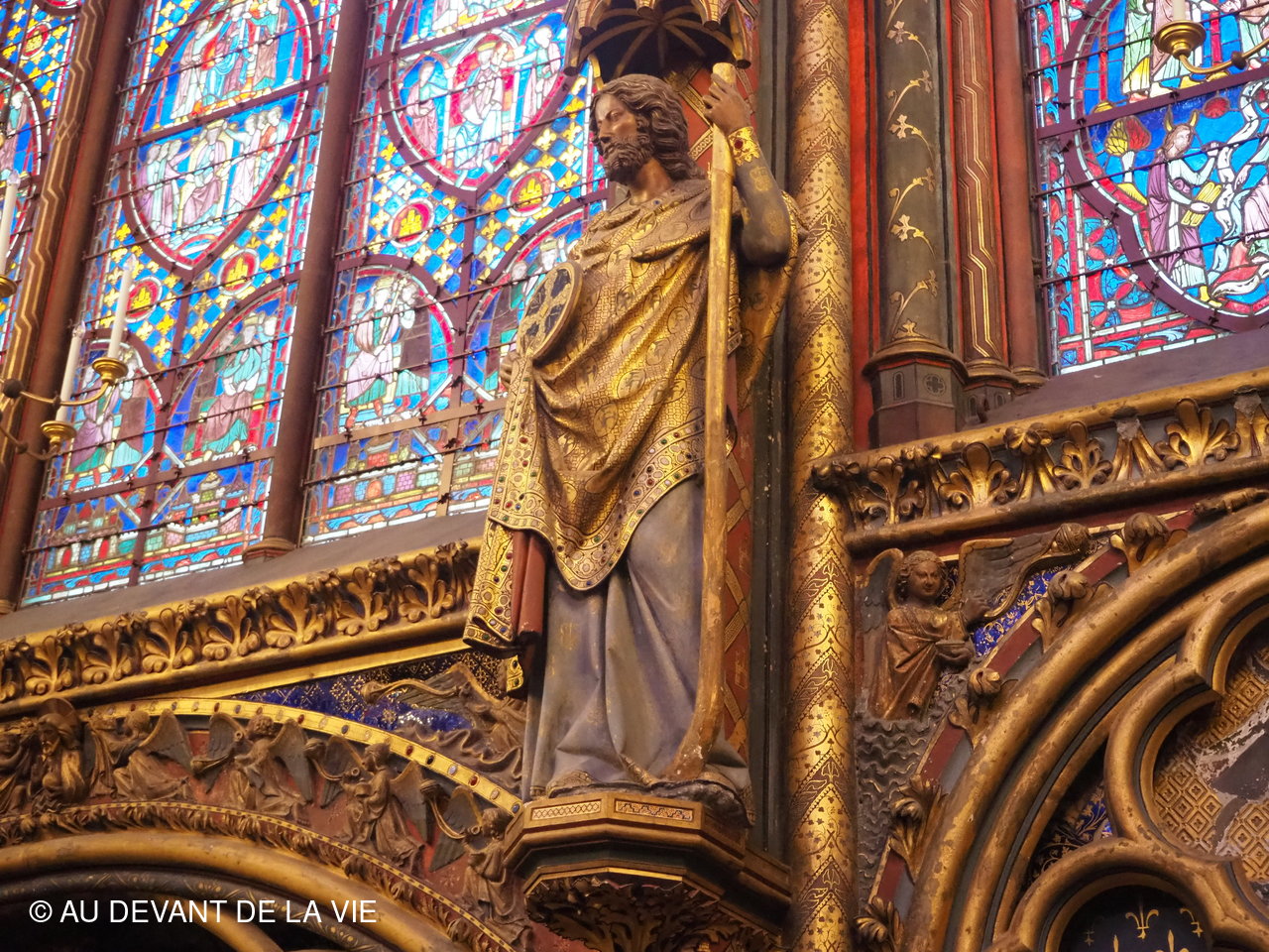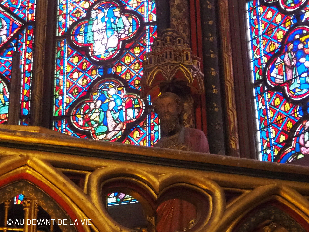 La journée n'a pas été des plus sereine. Nous sommes partis de Bois d'Arcy en tout début d'aprés midi pour tenir compte des problèmes de circulation inhérents à Paris et des conditions particulières de sécurité du quartier de la Ste Chapelle / Palais de justice entièrement bouclé par les services de police. Nous sommes arrivés malgré tout très en avance par rapport à l'heure programmée pour la visite. Pas de chance la météo n'était pas avec nous: pluie, vent, froid. Néanmoins aprés avoir enfin solutionné quelques problèmes d'organisation avec les deux conférencières et patienté plus que nous l'avions prévu, les participants ont enfin pu admirer l'architecture de cette magnifique chapelle.