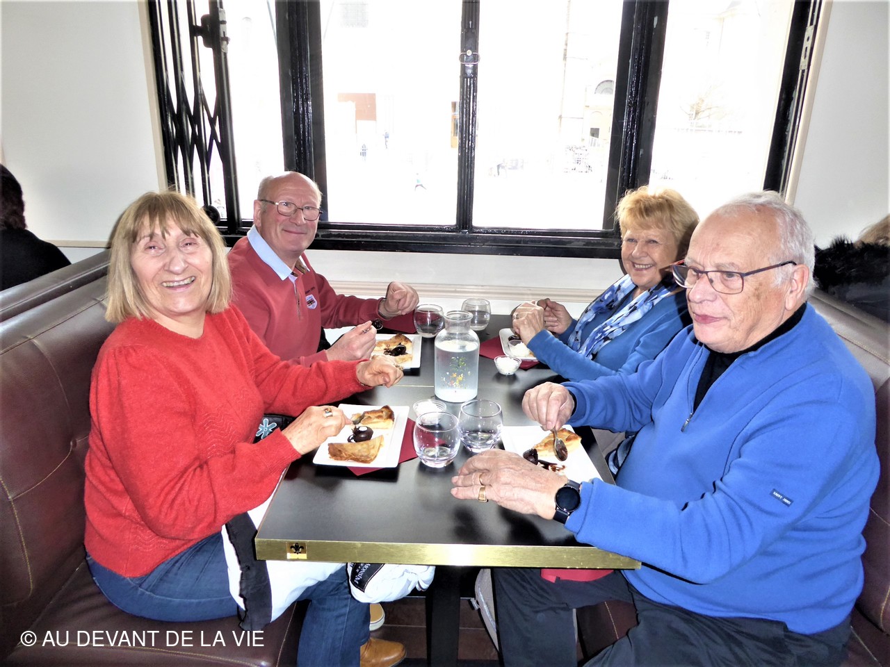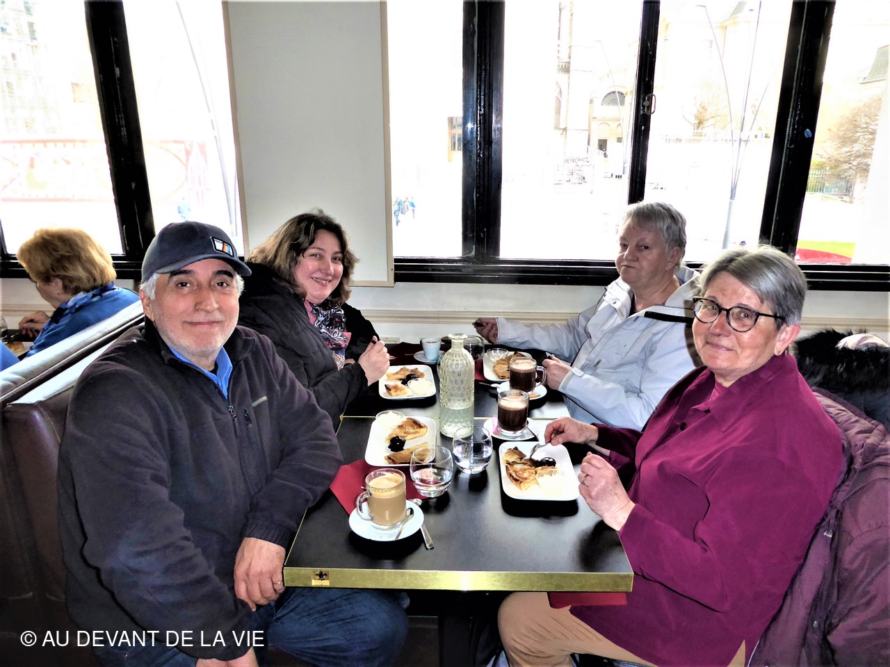 Après avoir parcouru environs 3,5 kms, les jambes lourdes, fatigués, le car nous a conduits dans un restaurant face à la basilique Saint-Denis afin de déguster un délicieux "café gourmand" bien réconfortant.