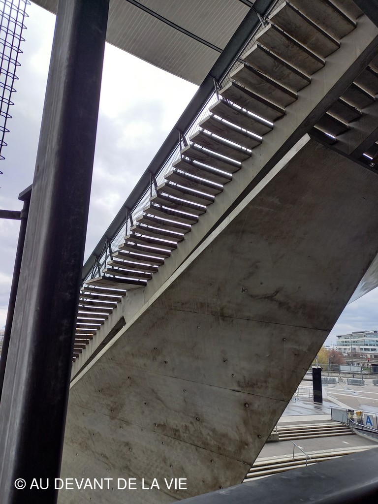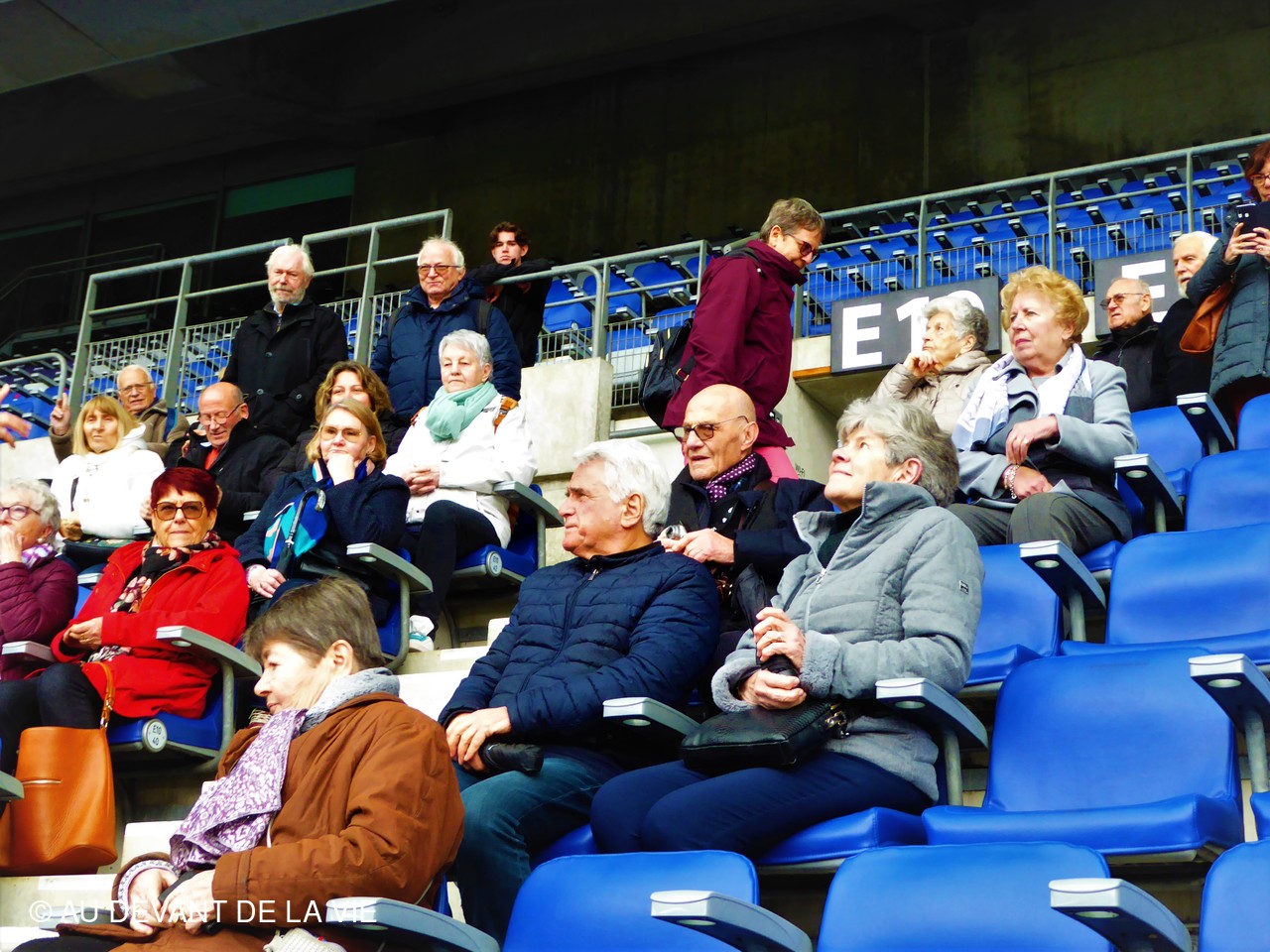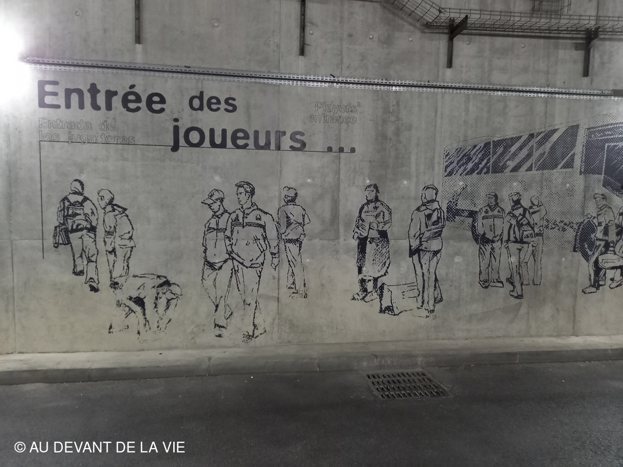 Accueillis ensuite par une conférencière passionnante qui nous a fait gravir puis descendre de nombreux escaliers. Nous avons parcouru les gradins nous permettant d'avoir une vue panoramique du stade. Puis ce fut un parcours "sportif" dans les longs souterrains et passages menant aux diverses entrées et notamment celle qui permet aux joueurs d'accéder à la pelouse.