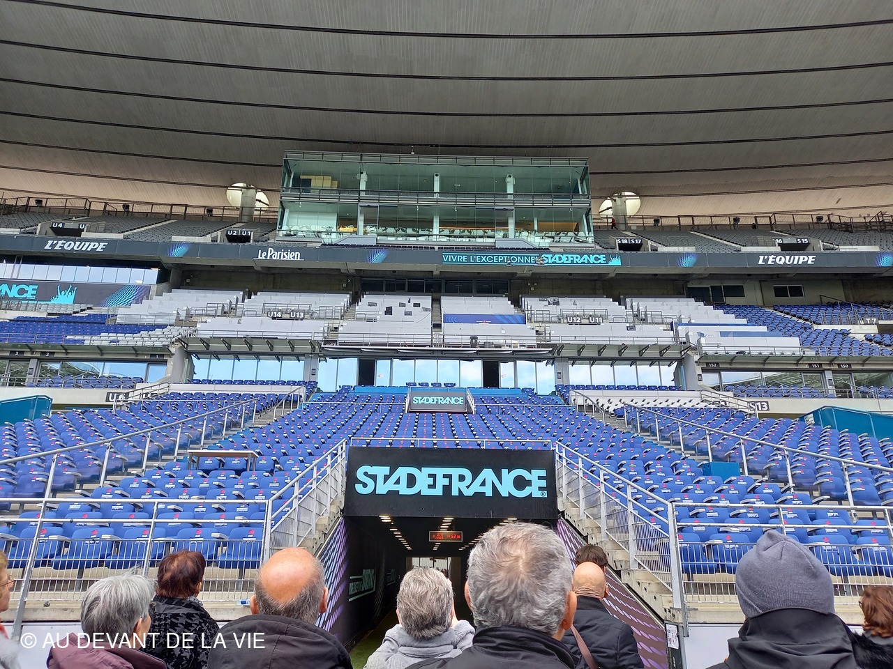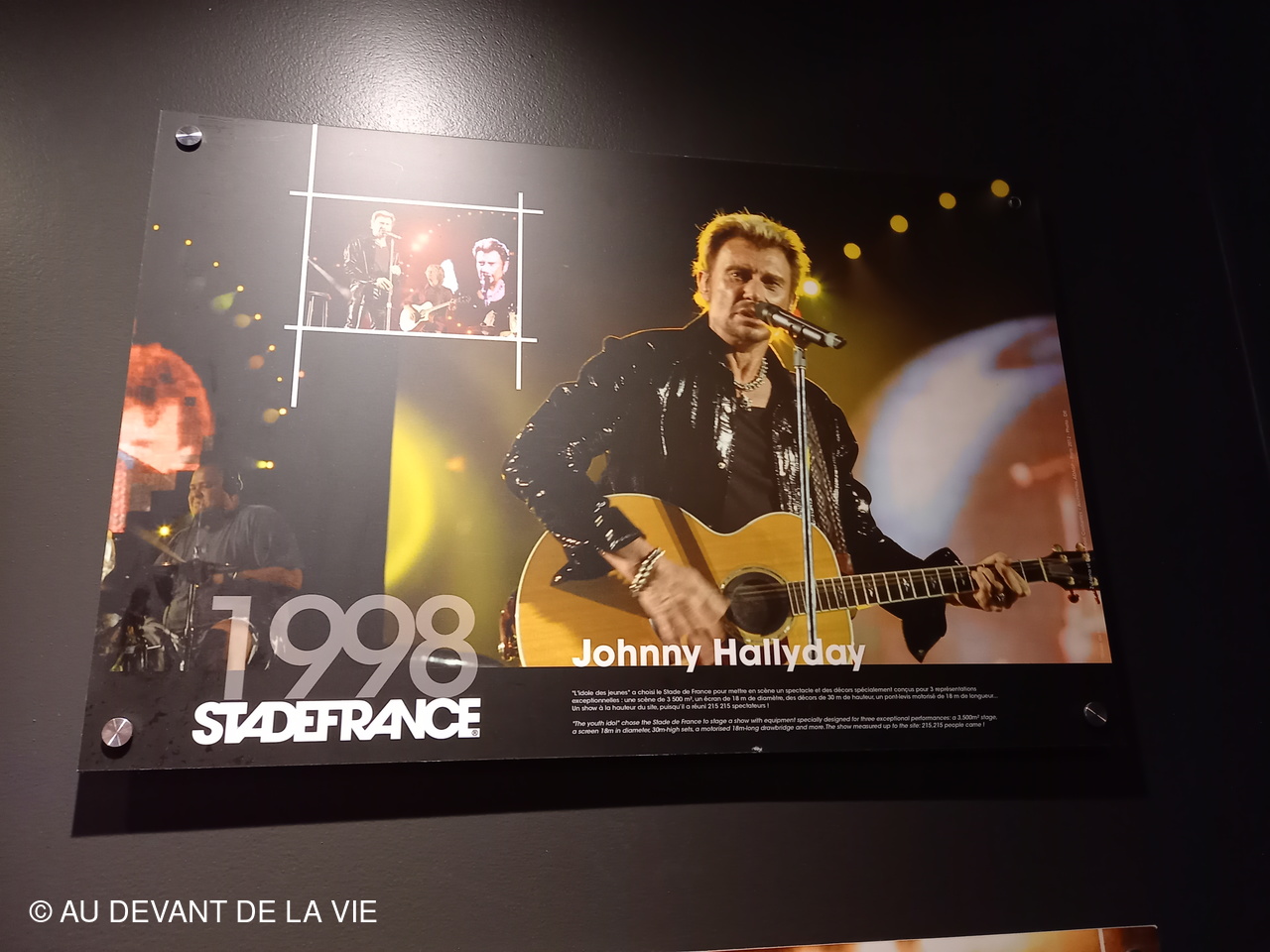 La visite a débuté par la découverte du Musée du Stade de France, à l'intérieur duquel sont exposés tous les documents , objets témoins depuis sa construction en 1995 ainsi que les évènements qui s'y sont déroulés: récitals, opéras, vidéos, maquettes, décors, guitares et maillots dédicacés, costumes etc.