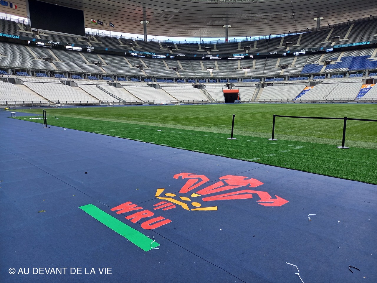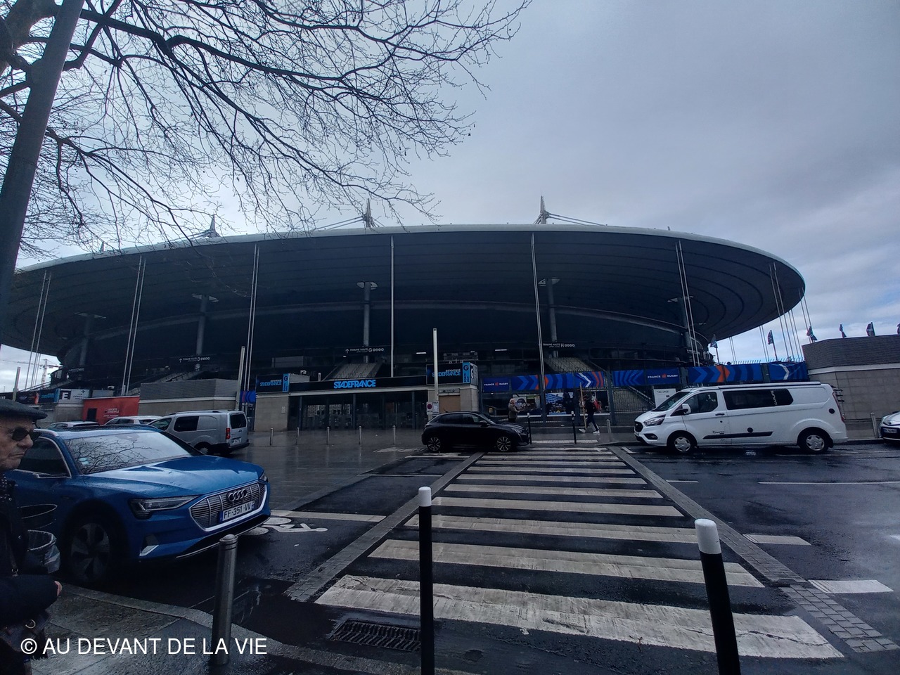 Par un temps maussade nous sommes arrivés au célèbre et magnifique Stade de France à Saint-Denis .