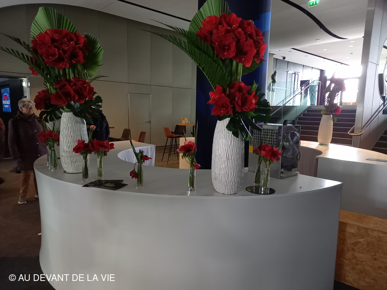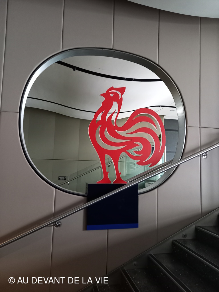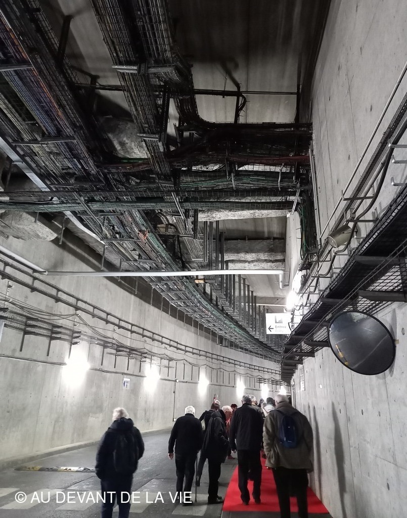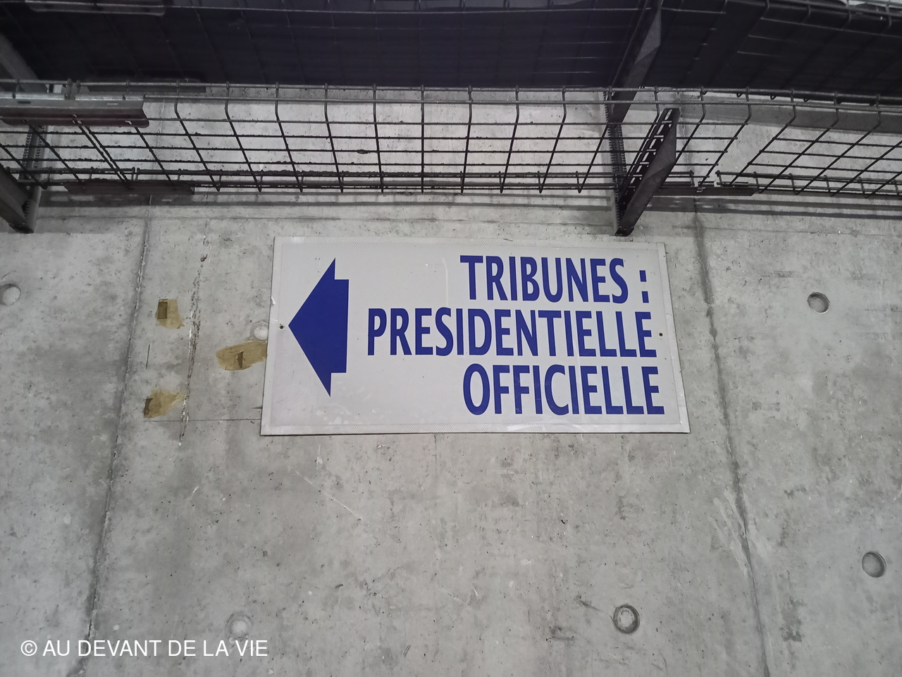 la visite s'est poursuivie par la visite des accès réservés aux services de secours puis par la découverte de la loge présidentielle ainsi que ses salons attenants joliment fleuris et enfin le blockhaus de sécurité du président utilisé en cas de nécessité.