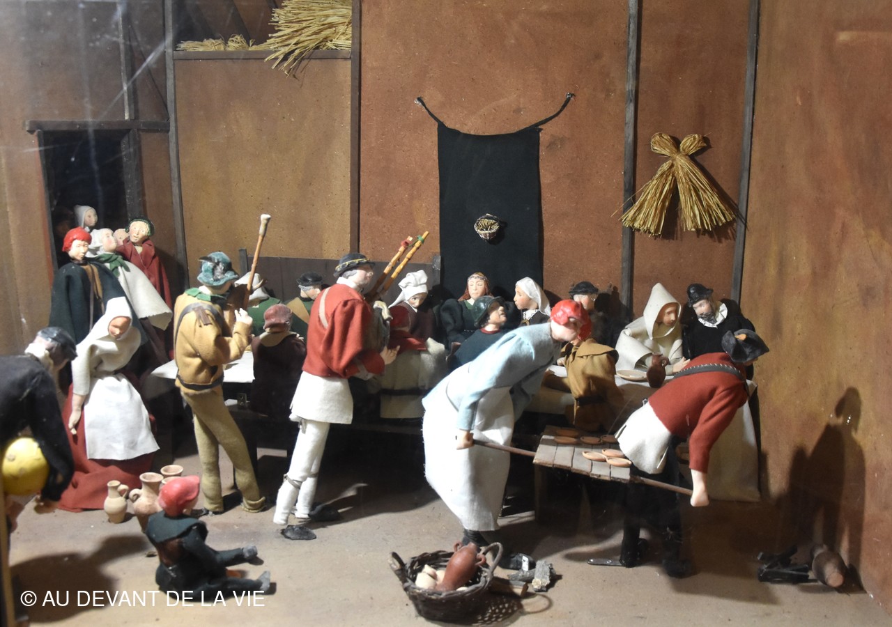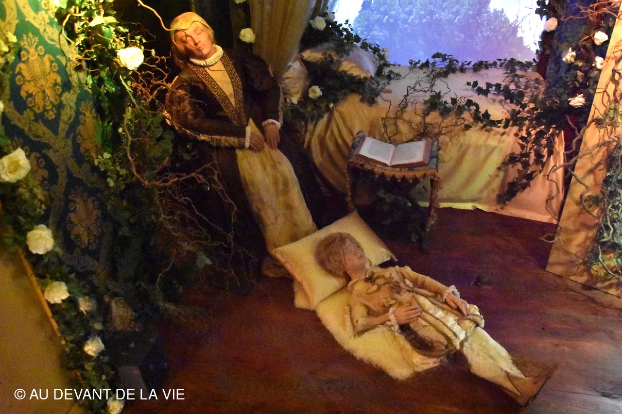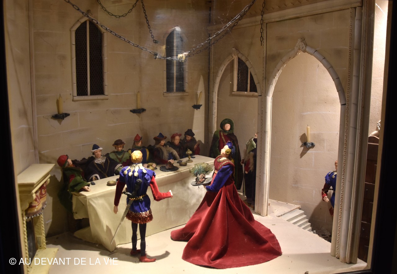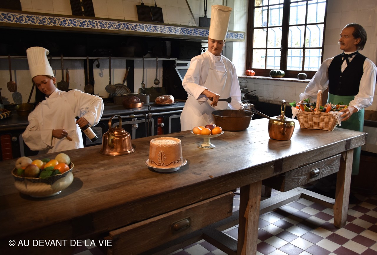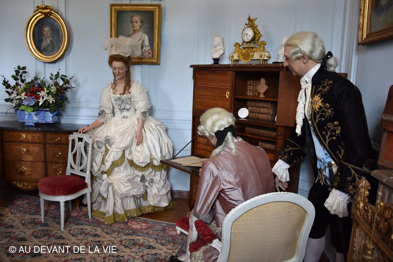 Chaque pièce traversée est occupée par des personnages en cire trés réalistes et évoque des scènes de la vie courante au château.