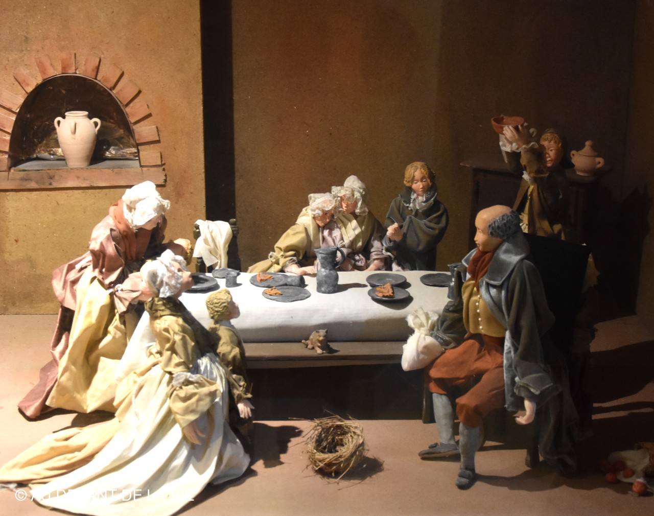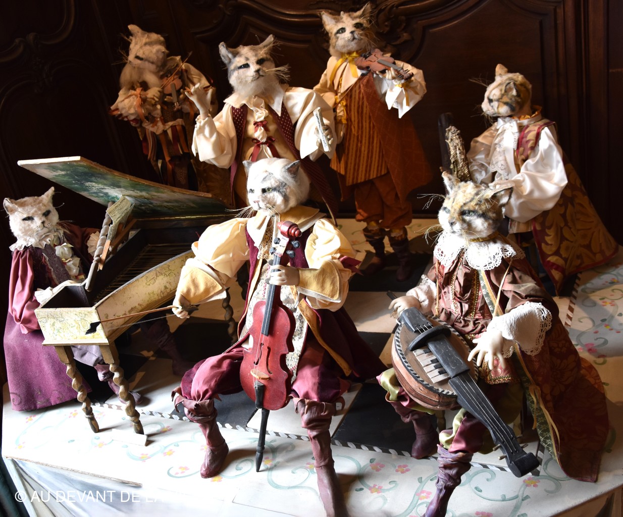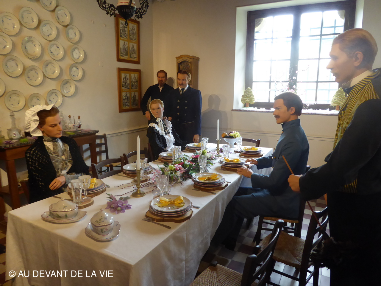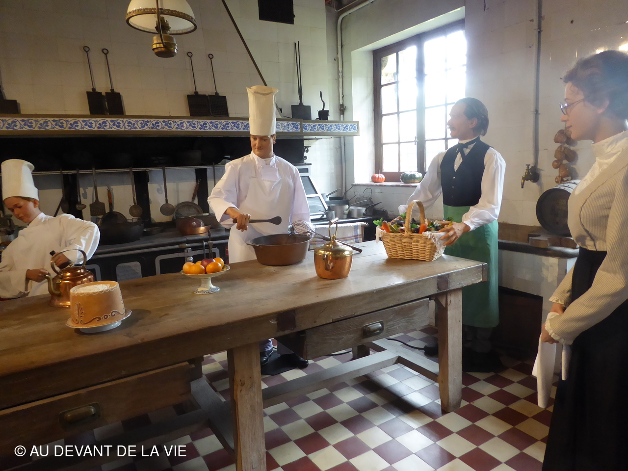 Chaque pièce traversée est occupée par des personnages en cire trés réalistes et évoque des scènes de la vie courante au château.