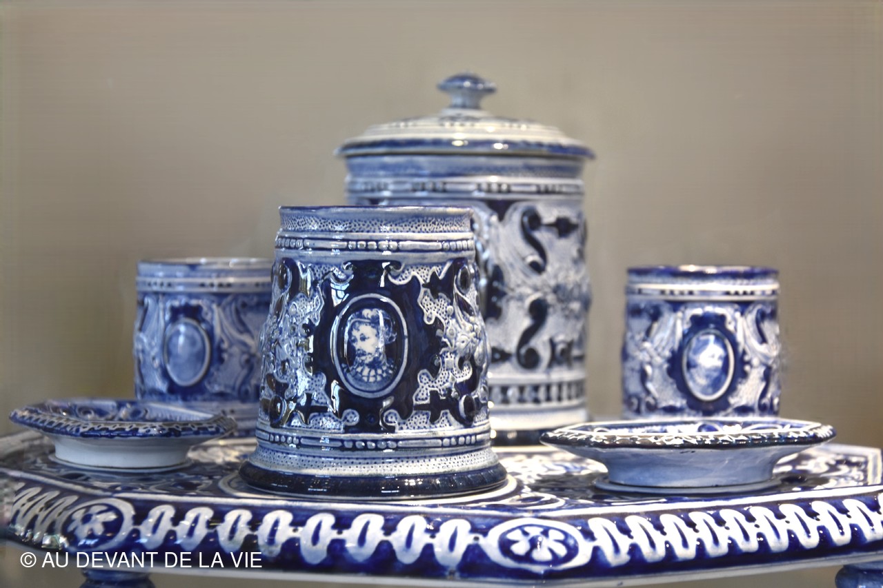 Après avoir traversé à pied l'Oise au moyen d'une passerelle, nous avons été reçu par trois guides passionnées et passionnantes qui nous ont tout expliqué sur l'Histoire de la Faïence de Creil développée au XIXème siècle et dont la réputation équivalait à celle de Gien.