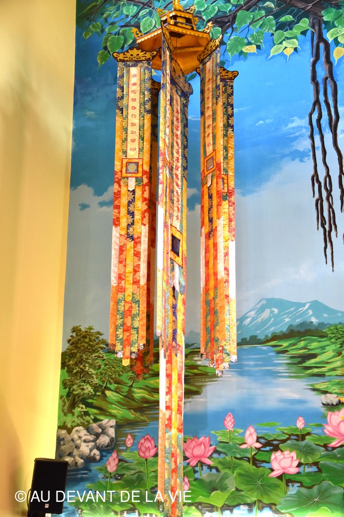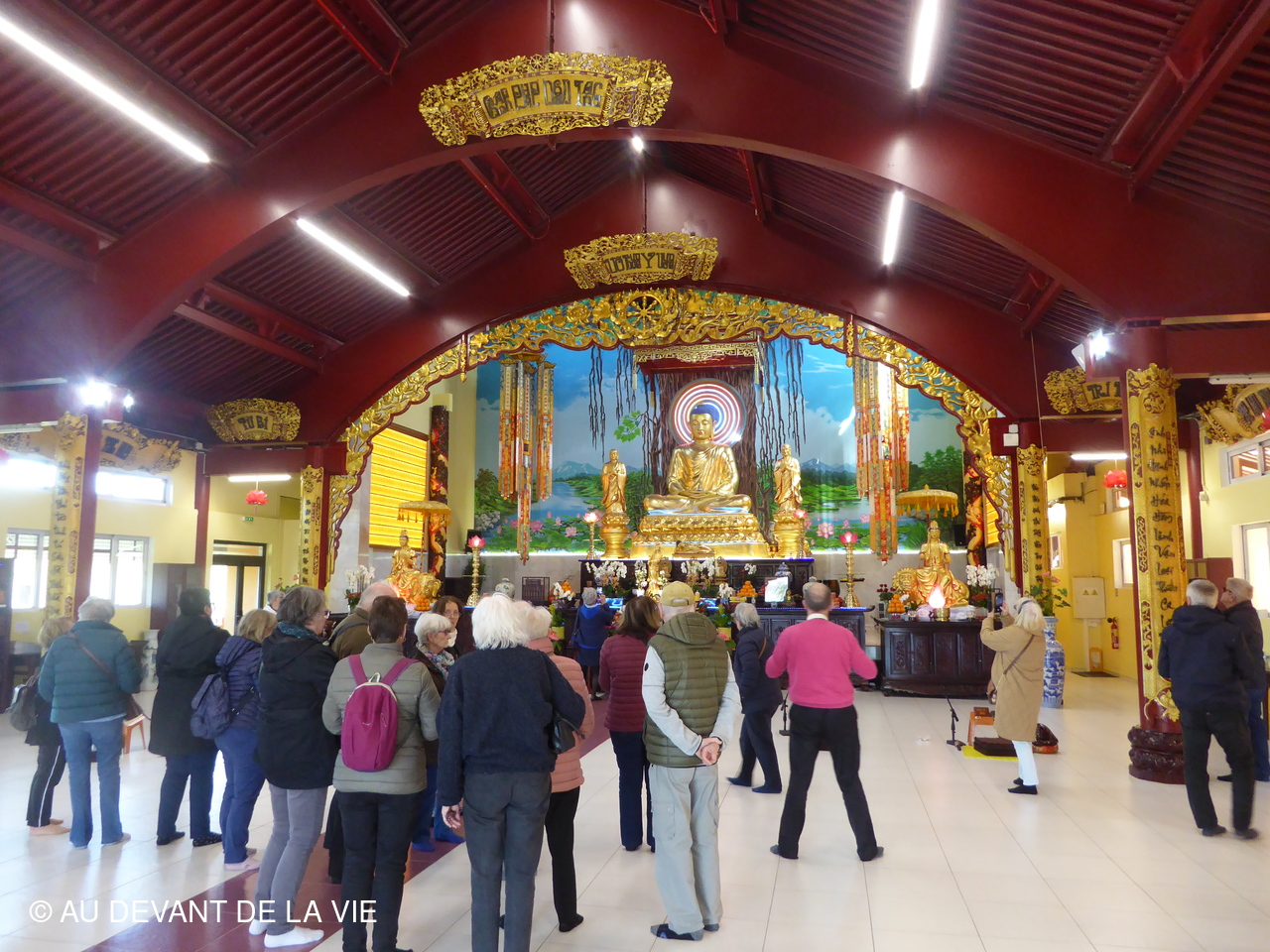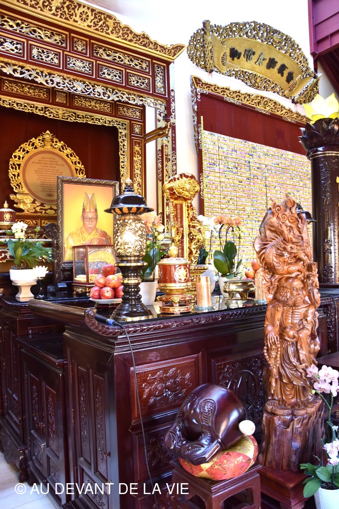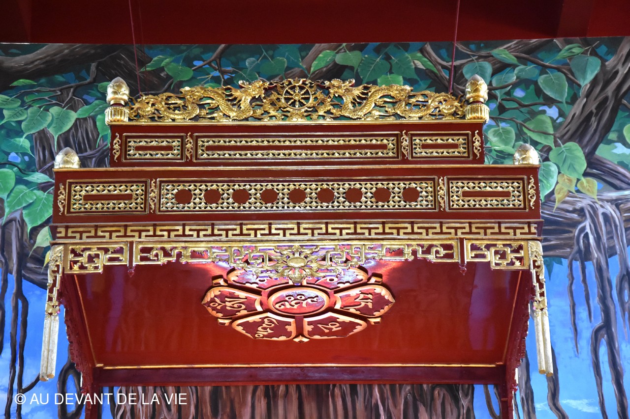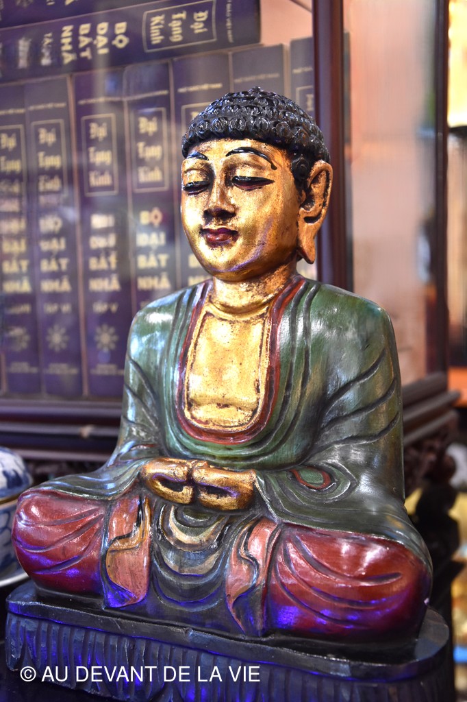 Ce qui saute aux yeux en arrivant devant la pagode , ce sont les teintes vives et chaudes qui couvrent les murs de cette dernière et lui donnent un air magique et irréel. Accompagnés de deux guides vietnamiens trés accueillants puis d'un conférencier nous avons visité cette superbe pagode en découvrant les rites et les coutumes de ce temple bouddhiste.
