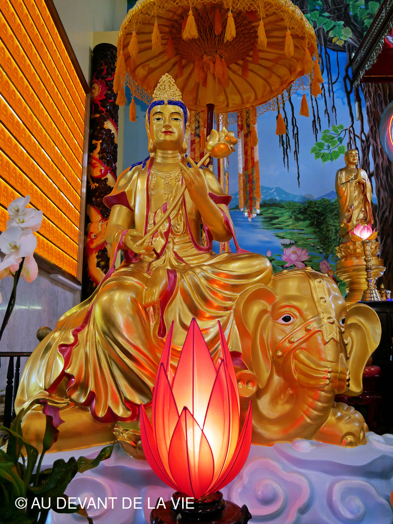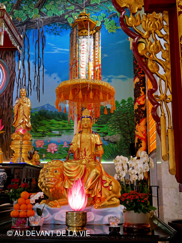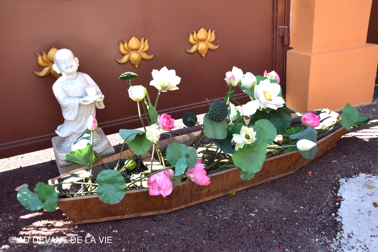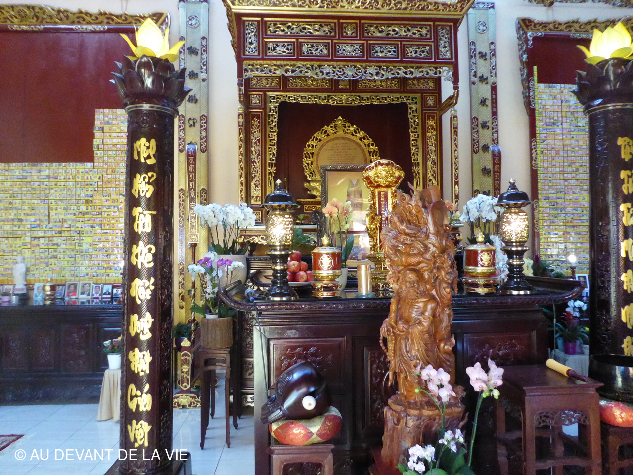 Ce qui saute aux yeux en arrivant devant la pagode , ce sont les teintes vives et chaudes qui couvrent les murs de cette dernière et lui donnent un air magique et irréel. Accompagnés de deux guides vietnamiens trés accueillants puis d'un conférencier nous avons visité cette superbe pagode en découvrant les rites et les coutumes de ce temple bouddhiste.