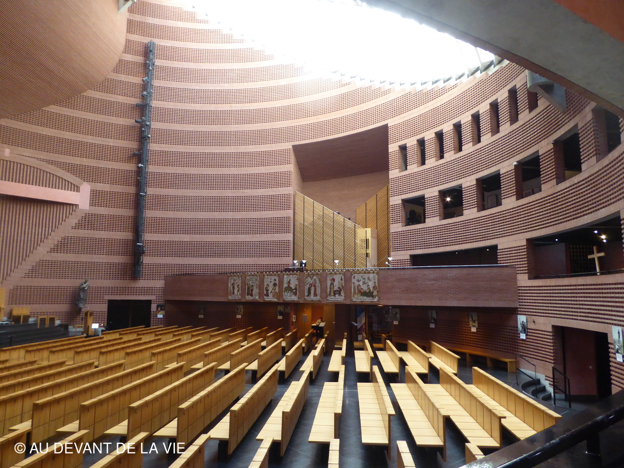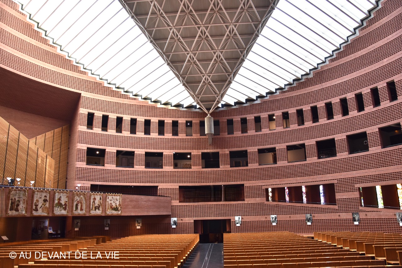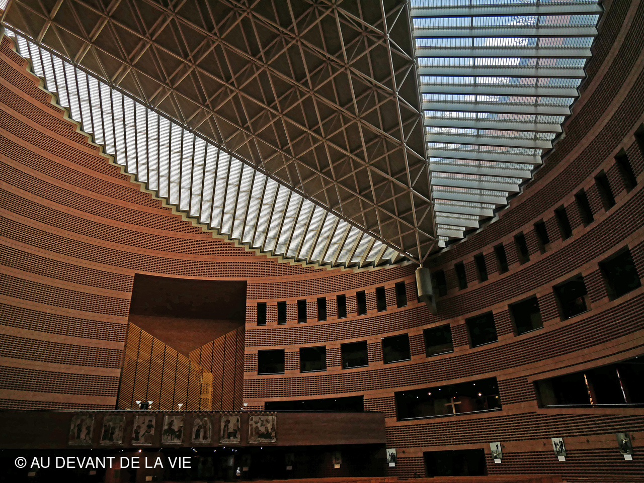 Le guide officiel de la cathédrale nous a fait découvrir cette cathédrale inaugurée en 1995 remarquable par son architecture contemporaine et concue par l'architecte Mario BOTTA.