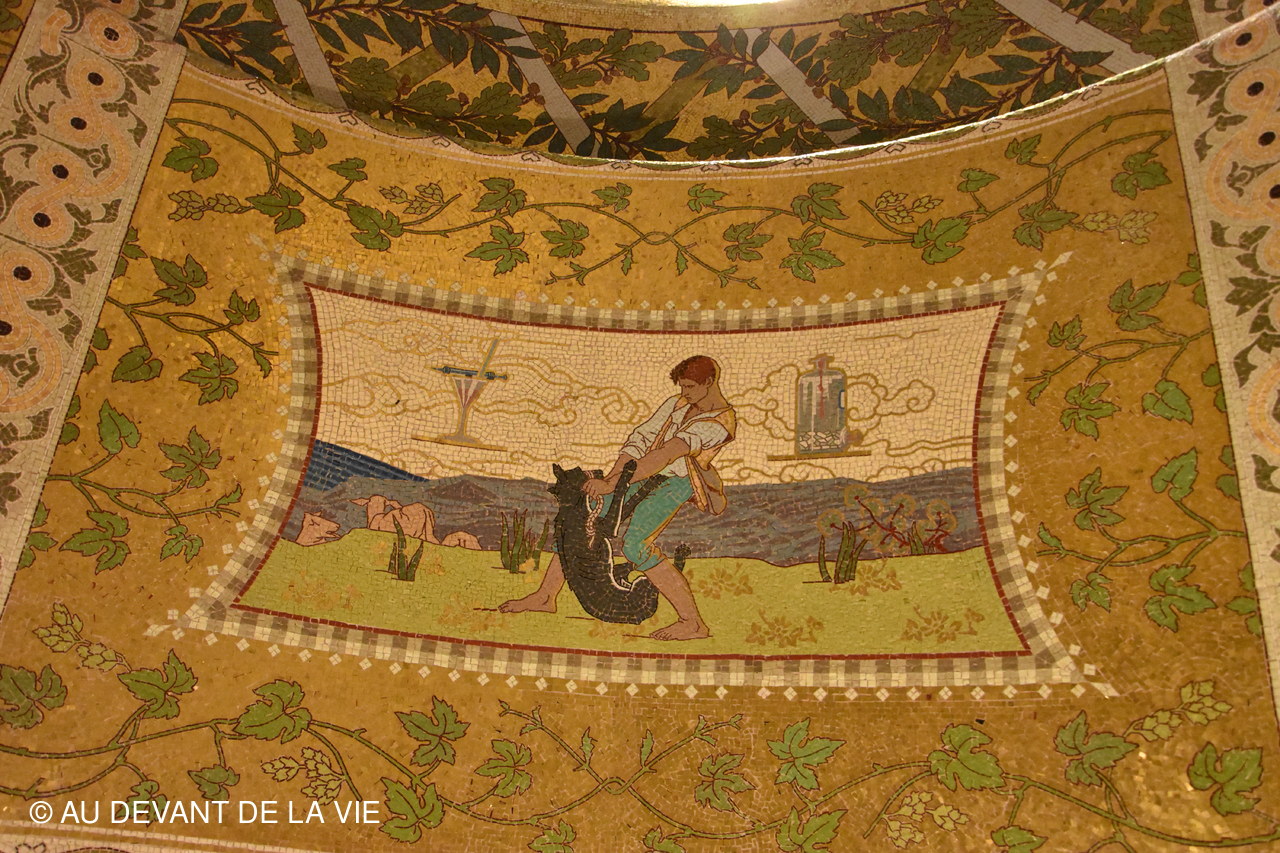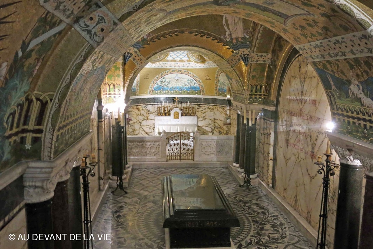 La visite se termine par la magnifique chapelle d'inpiration byzantine décorée de mosaiques , où reposent Louis Pasteur et son épouse.