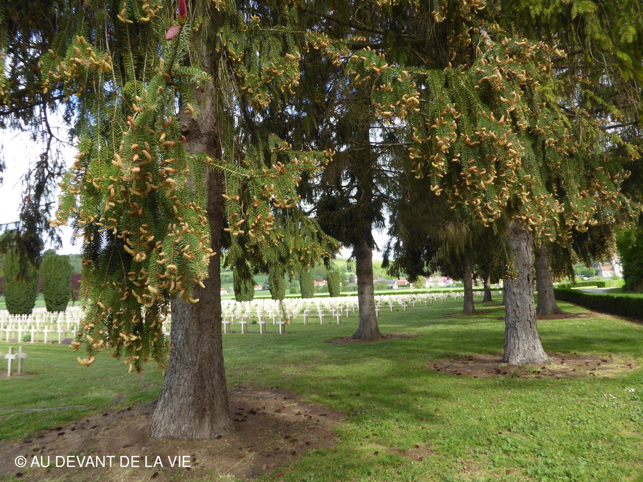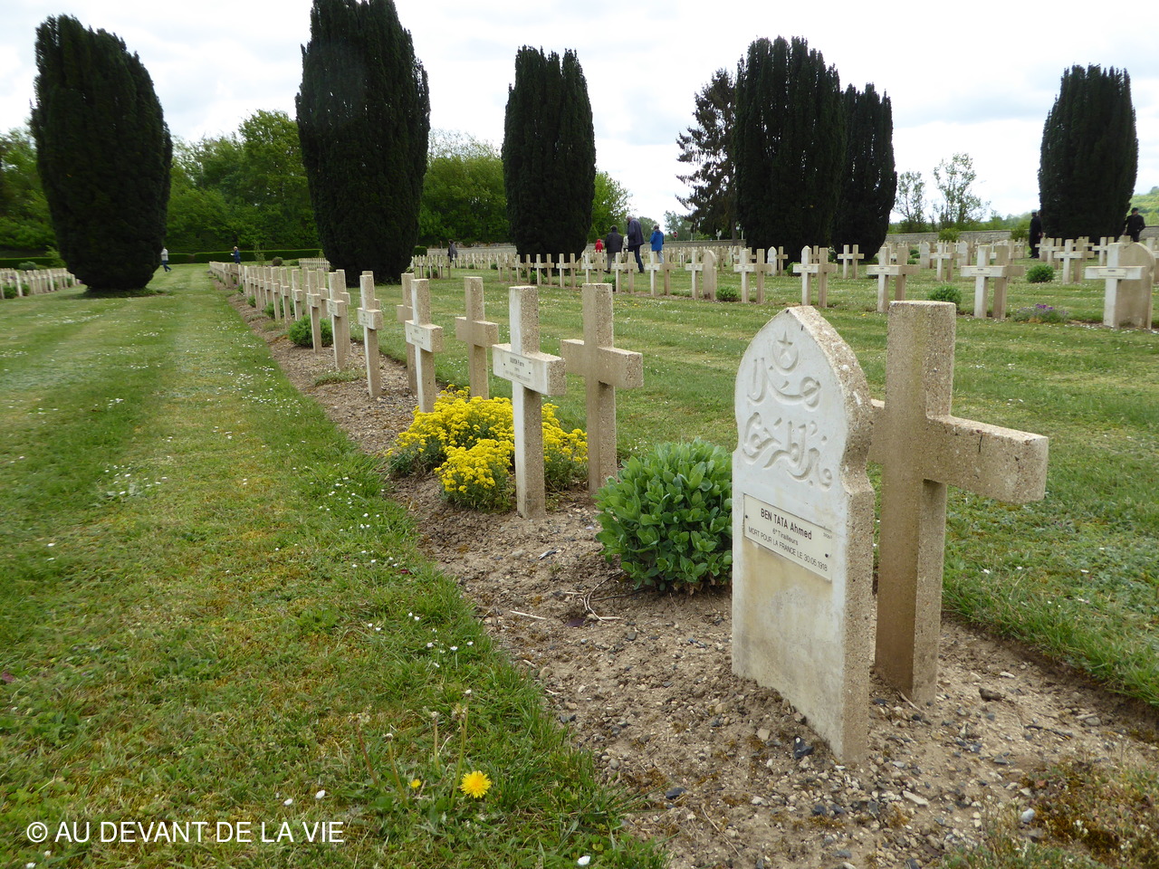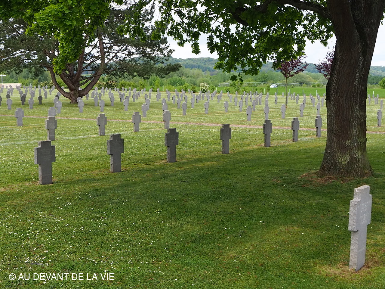 Arret au cimetière de SOUPIR Le territoire communal de Soupir accueille les deux nécropoles nationales de Soupir créées à partir de 1920 afin de rassembler les corps des fosses collectives d'Athies-sous-Laon, Gellnes, Pargny-Filain, Vieil-Arcy, soldats Morts pour la France à l'automne 1914, en avril 1917 et en octobre 1918. Il abrite 7 808 corps dont 4 720 en tombes individuelles et collectives et 3 088 dans les 3 ossuaires, ainsi que quatre fosses collectives regroupant 266 corps qui proviennent des sites de Vieil-Arcy, Athies-sous-Laon, Glennes et Pargny-Filain. S'y trouve aussi la tombe d'un soldat belge et celle d'un combattant russe.