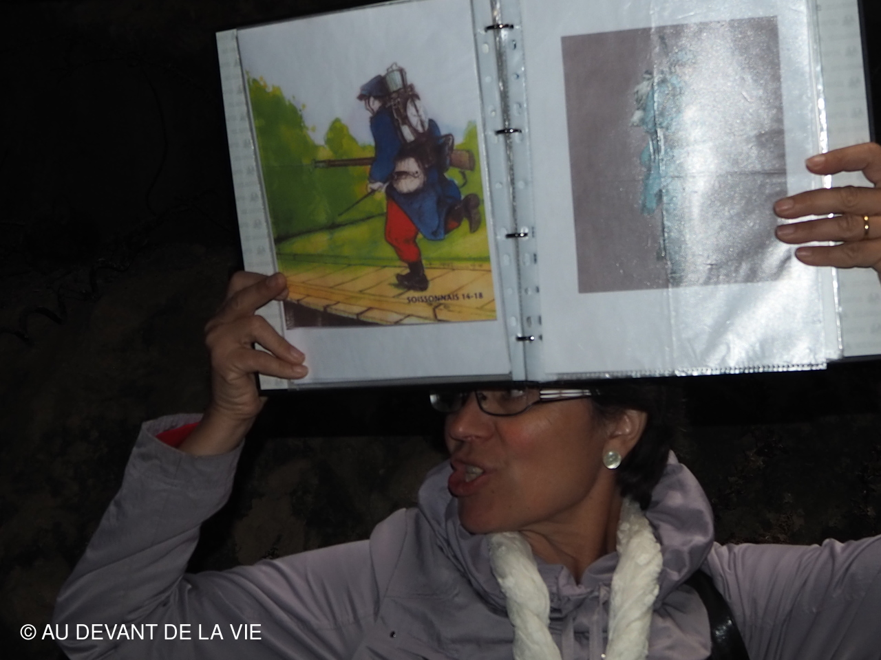 Après midi consacrée à la visite de La Caverne du dragon située sur le Chemin des Dames, sur le territoire de la commune d'Oulches-la-Vallée-Foulon, dans le département de l'Aisne. Depuis 1915 la caverne alors aux mains des allemands est utilisée pour le cantonnement des troupes avec infirmerie et cantine. Le 25 juin 1917 les troupes francaises entrent dans la caverne et repoussent les allemends au fond de la carrière.