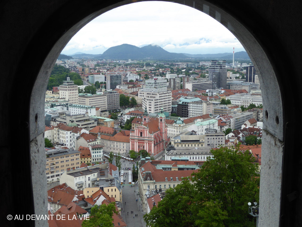 LJUBLJANA la capitale tout d’abord, au bas des pentes verdoyantes avec son château au sommet de la colline accessible à l’aide d’un funiculaire, ses ponts, ses églises, et sa cathédrale St NICOLAS.