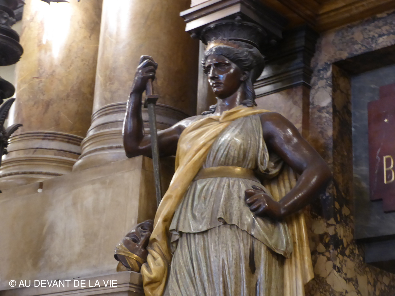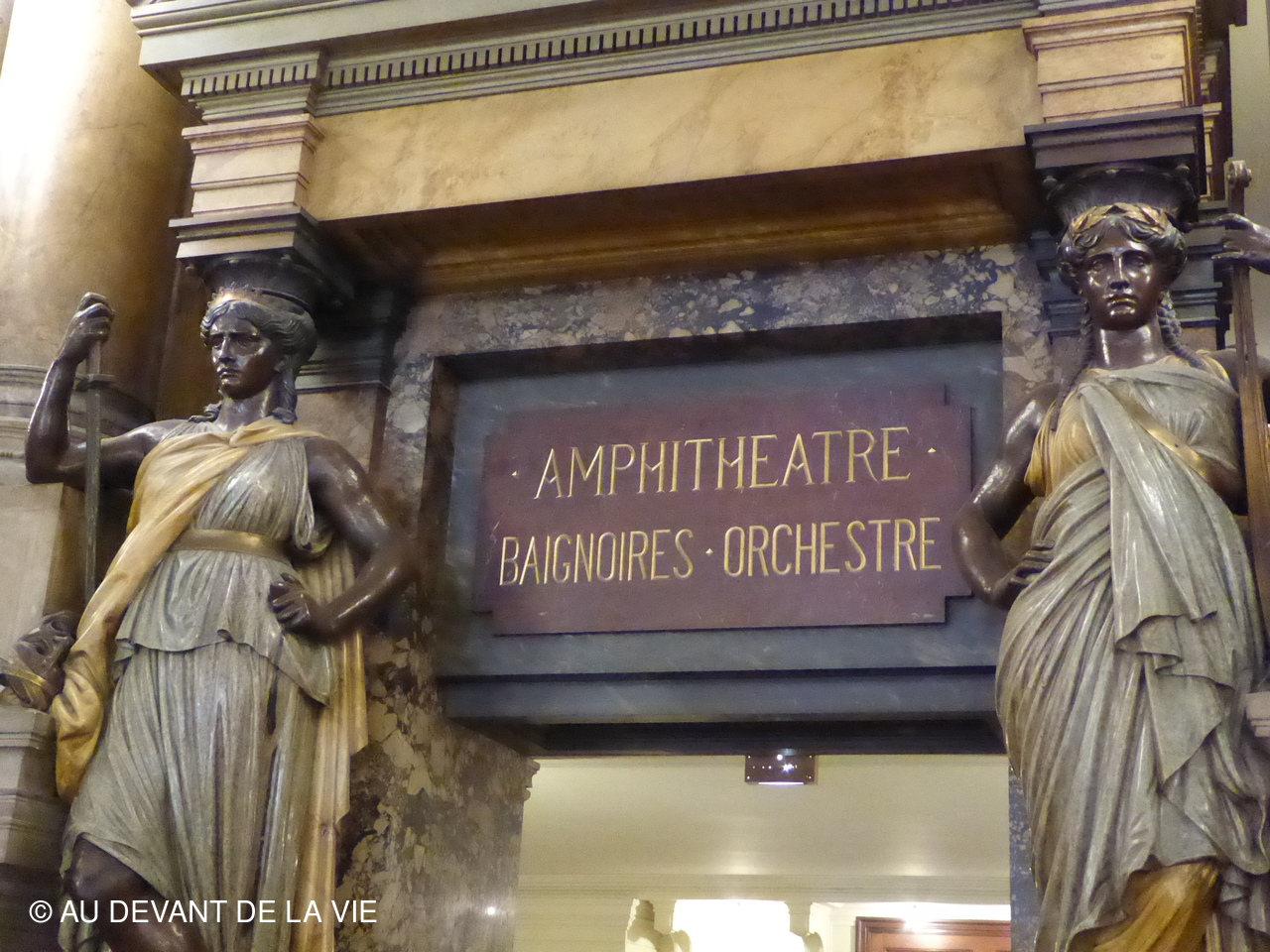 Nous sommes passés ensuite devant la fascinante statue de la Pythie avant d’atteindre le Grand escalier, haut lieu de mondanité, où les spectateurs se montraient vêtus de leurs plus belles toilettes pour rejoindre leur place dans la salle. Nous avons été impressionnés également par le volume et la hauteur de la nef et avons pu contempler les ornements imaginés par Charles Garnier.