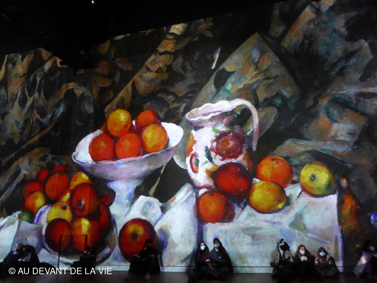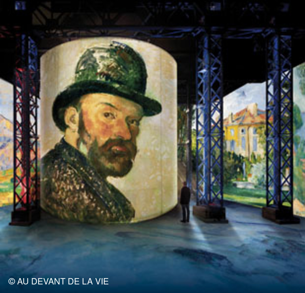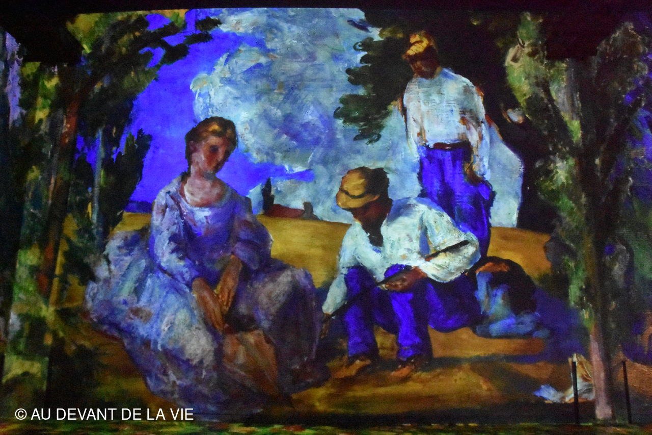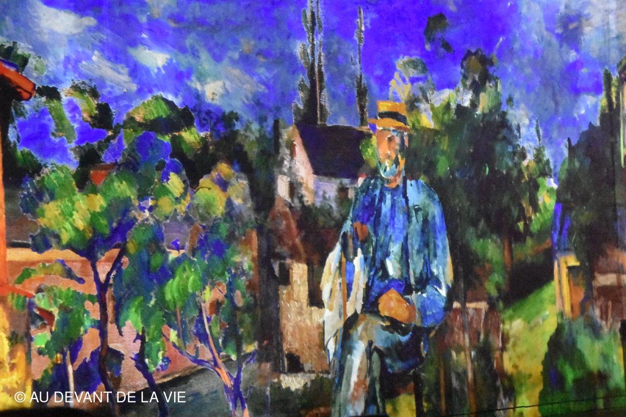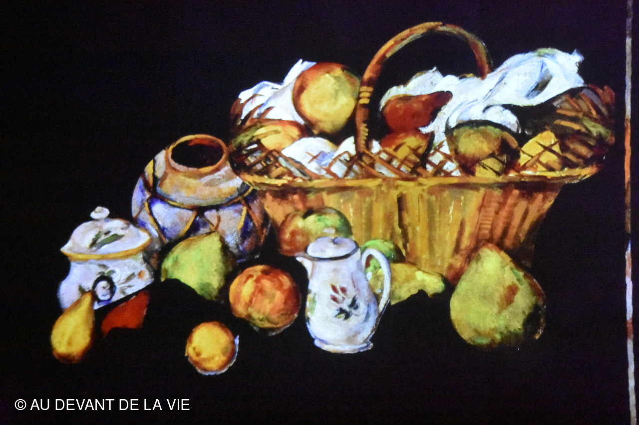 Exposition étonnante consacrée au peintre impressioniste Paul CEZANNE Vous trouvez ci-dessous des photos pêle-mèle prises lors de notre déambulation. L'animation permanente sur tous les espaces, murs et sol en a dérouté plusieurs et même indisposé certains jusqu' à sortir prématurément.