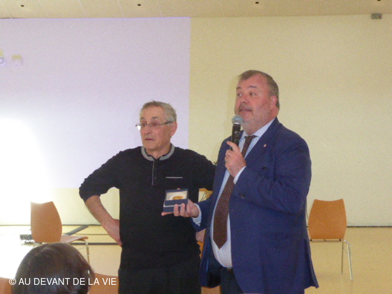 Au cours de ce goûter ,le député de la circonscription Philipe BENASSAYA accompagné de monsieur le maire de Bois d’Arcy Jean Philippe LUCE a procédé à la remise de la médaille de l’Assemblée Nationale à Jean Marie Guillemain , président de l’association pour le remercier de son implication et de son dévouement envers les séniors de l’association .