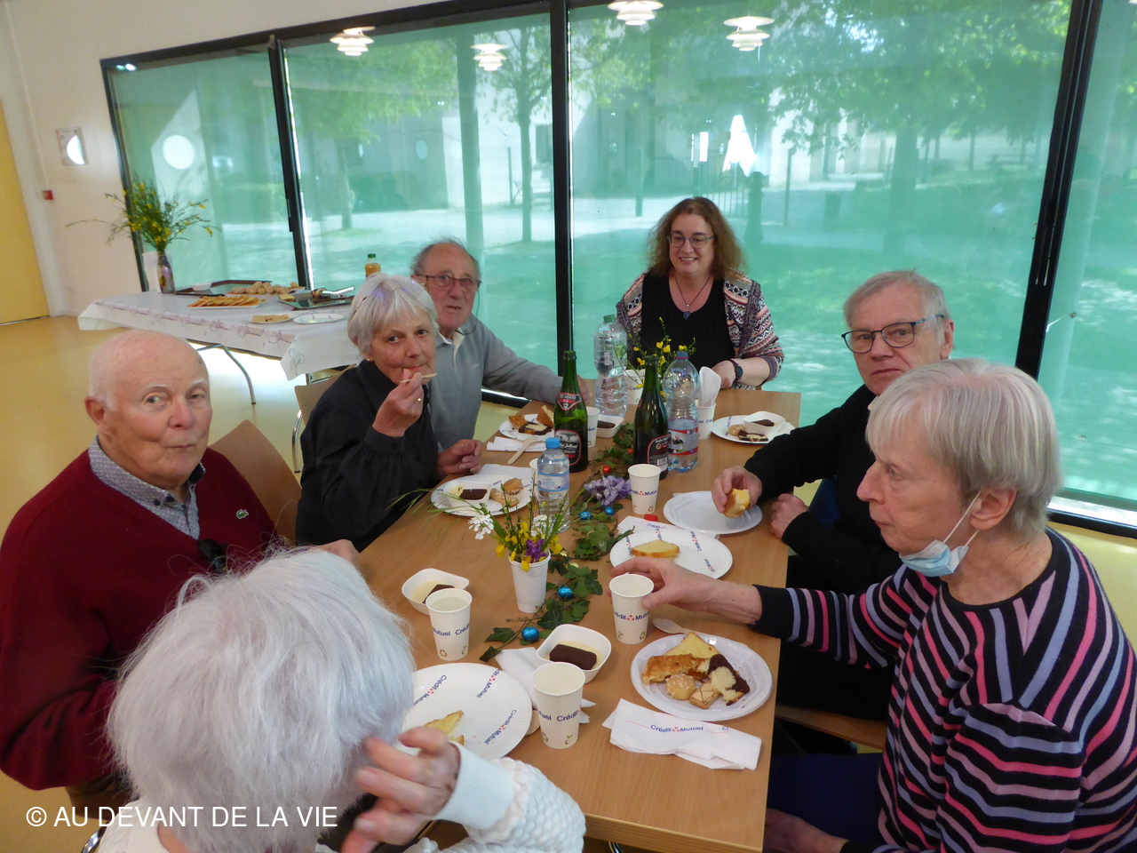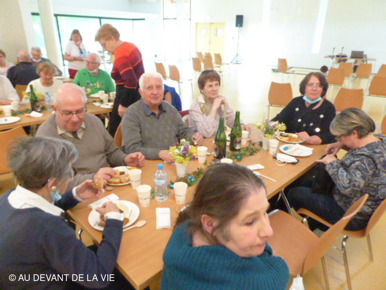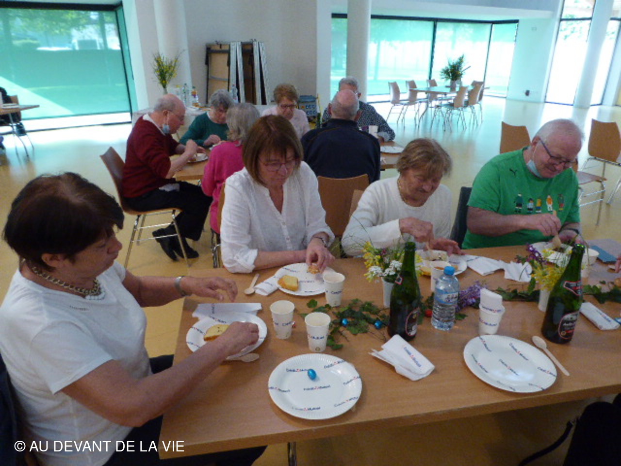 La "journée Galette" et le diaporama prévus le 14 janvier dernier, ayant été annulés pour cause de Covid , l’association Au Devant De La Vie souhaitant néanmoins retrouver ses adhérents lors d’ un après midi convivial et festif a organisé un "Goûter Pascal " le jeudi 21 avril.