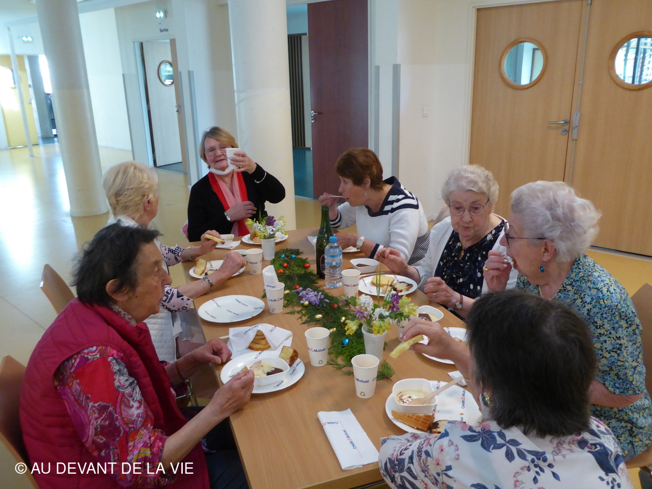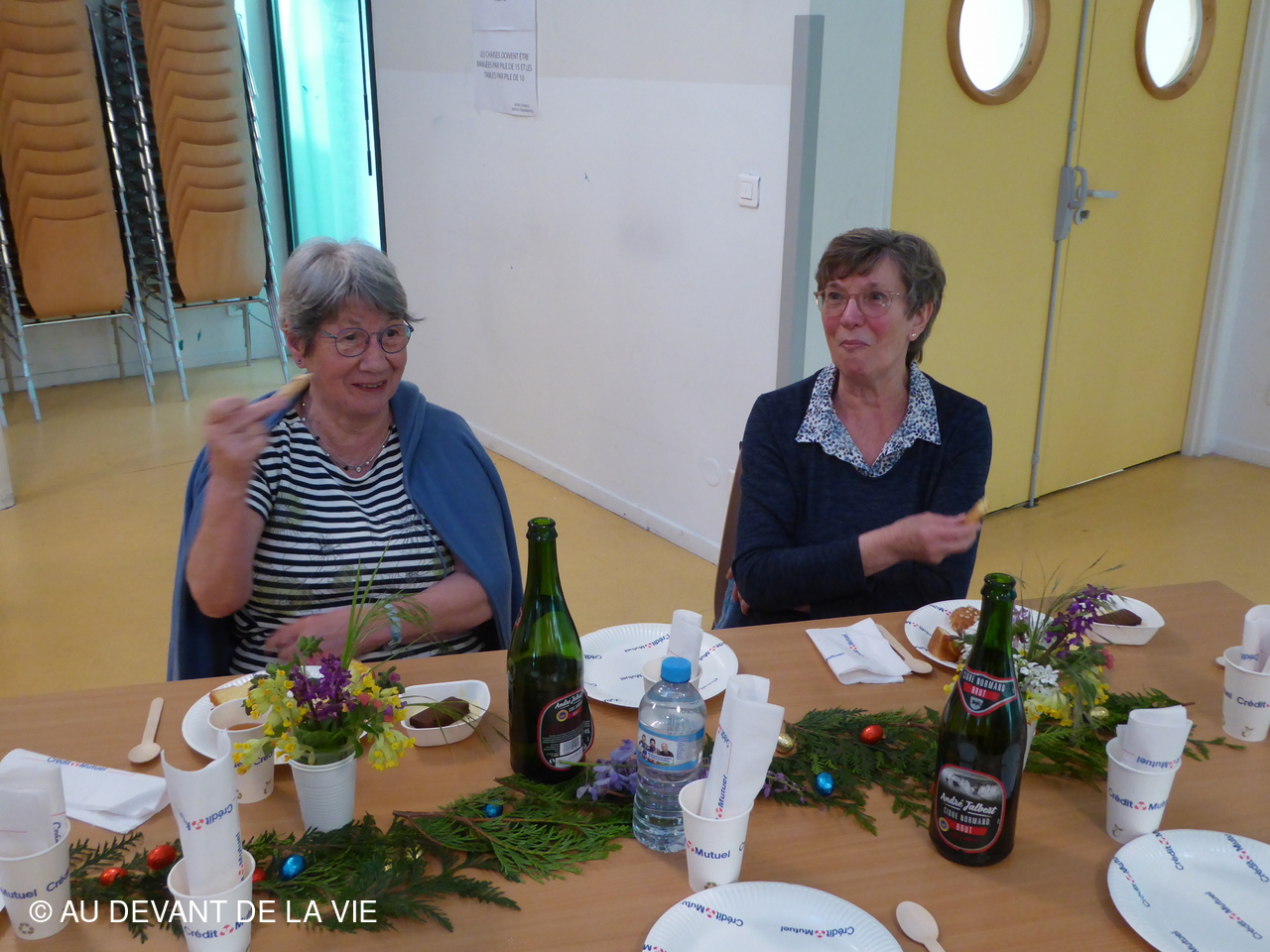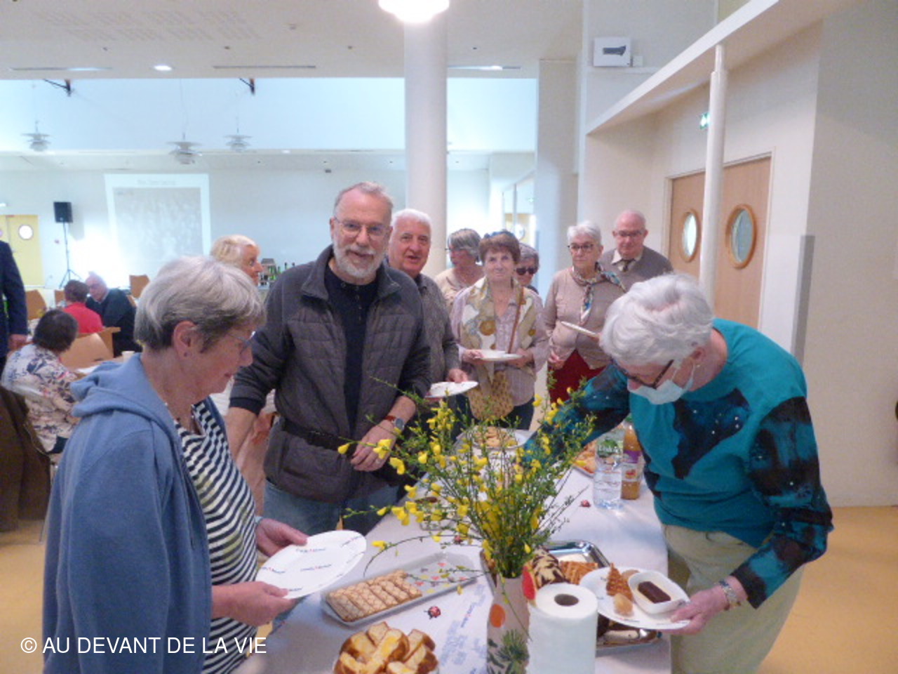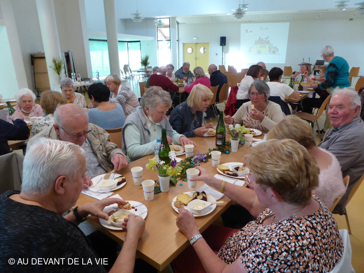 La "journée Galette" et le diaporama prévus le 14 janvier dernier, ayant été annulés pour cause de Covid , l’association Au Devant De La Vie souhaitant néanmoins retrouver ses adhérents lors d’ un après midi convivial et festif a organisé un "Goûter Pascal " le jeudi 21 avril.