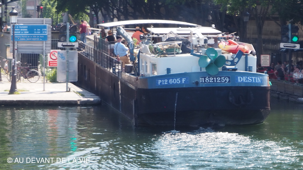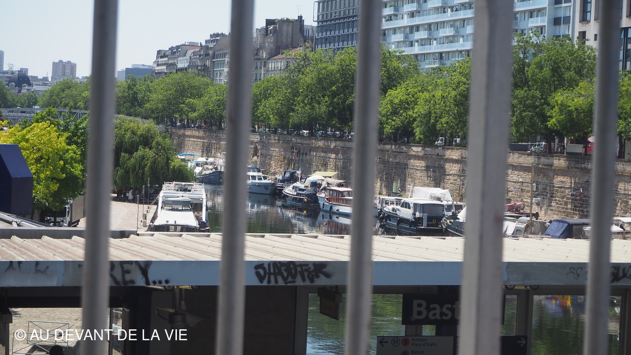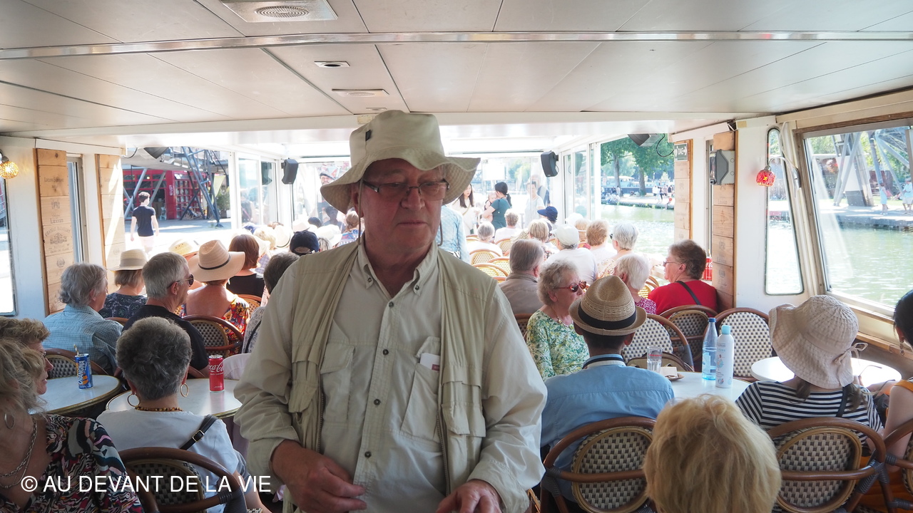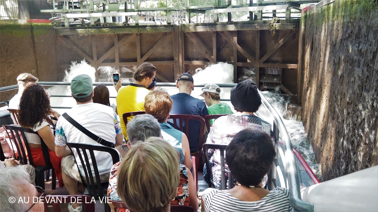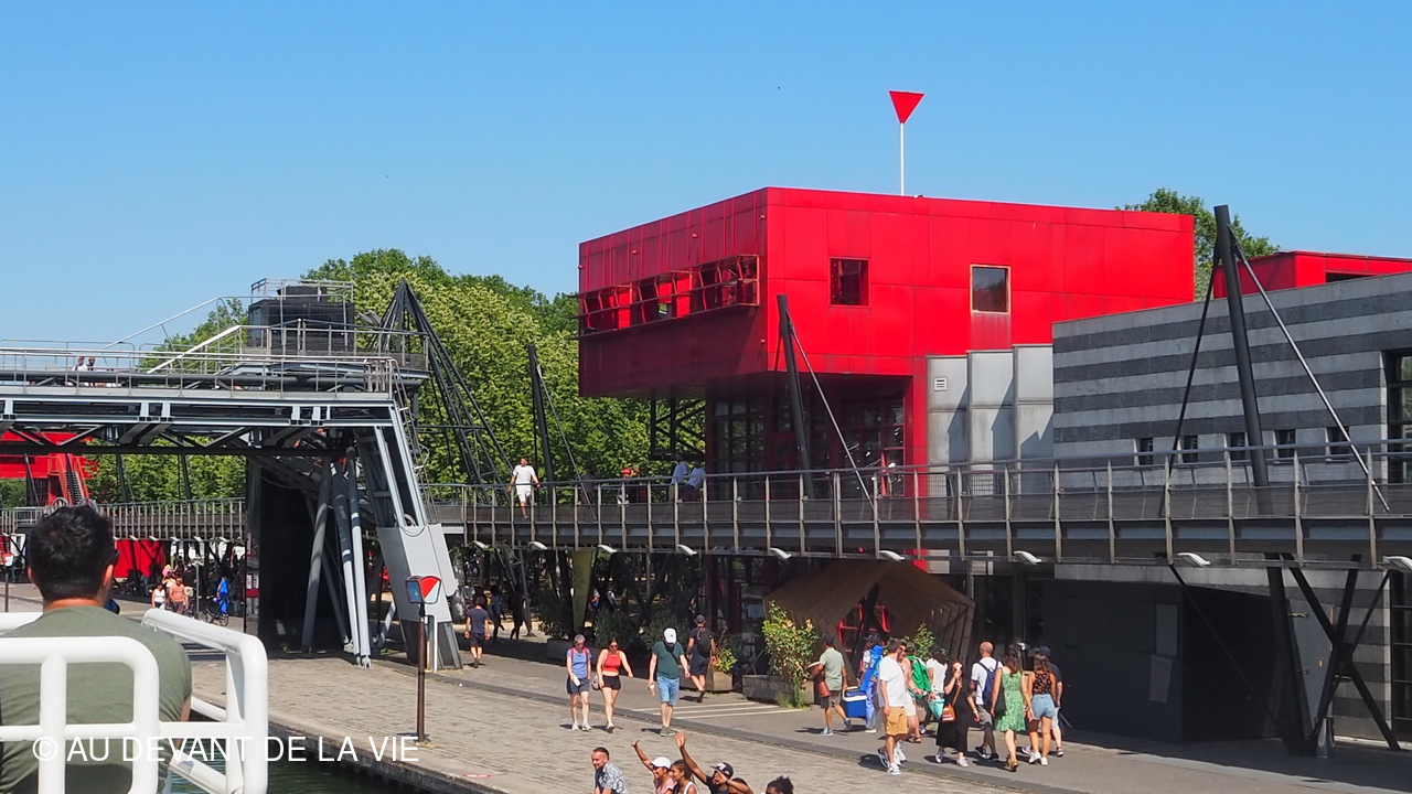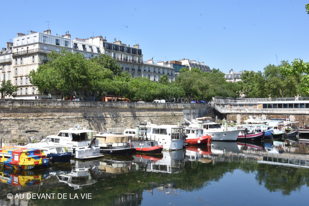 Pendant plus de 2h30 de navigation et aprés avoir passé plusieurs écluses la traversée de Paris du sud vers le nord nous a conduits au Bassin de La Villette et à à l'entrée du Canal de l' Ourcq.