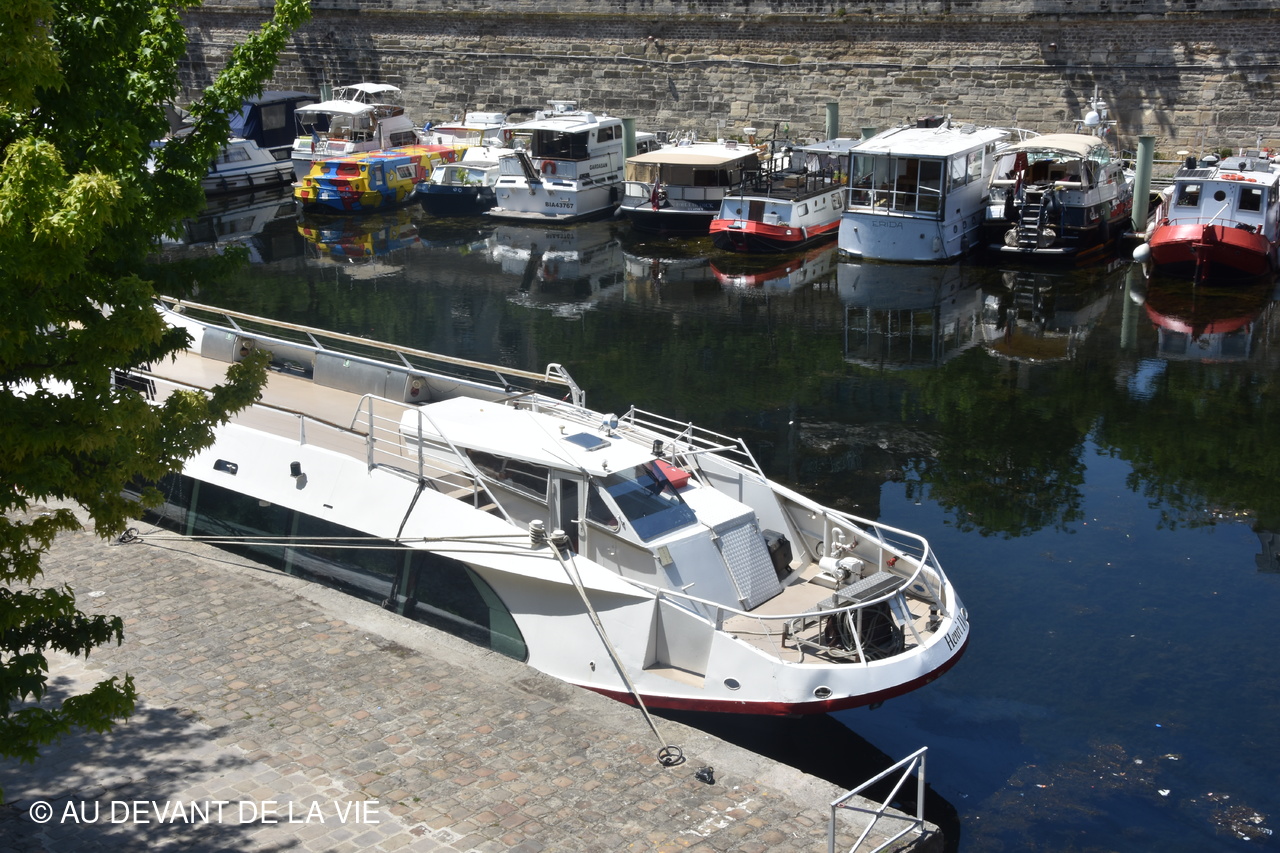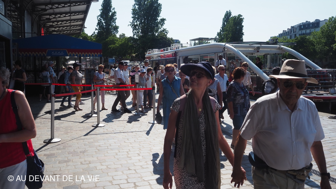 Embarquement au port de L'Arsenal à Paris près de l'opéra Bastille.