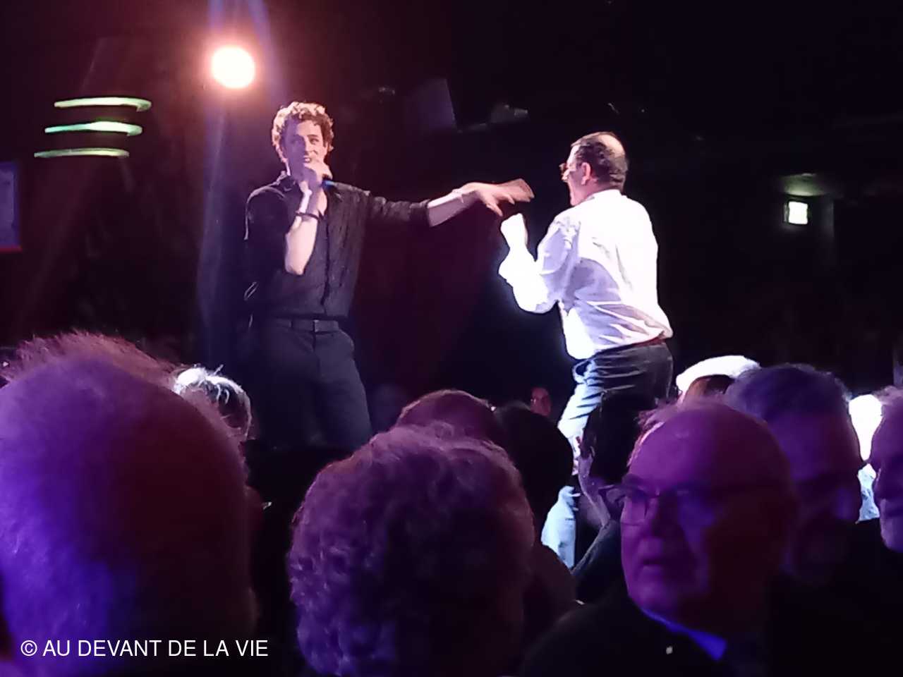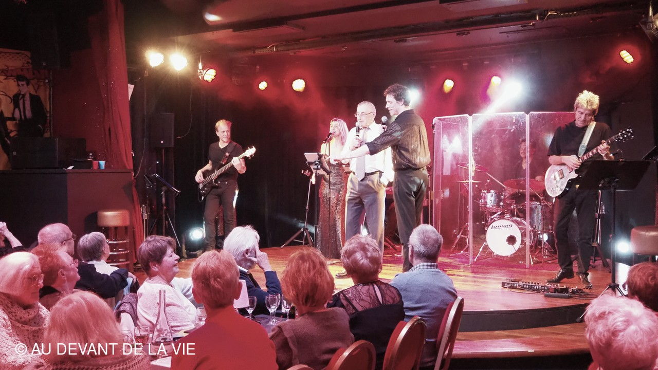 Bonne ambiance avec la participation de 2 chanteurs et 4 musiciens interprétant des airs des années 70 / 80 . Un jeu de question-réponse a permis à certains de remporter une coupe de champagne ou un pot de barbe à papa. ! Ce fut, ensuite, au tour de volontaires accompagnés par les musiciens d'interpréter sur scène une chanson. Certains, désignés d'office ont néanmoins participé de bon coeur .