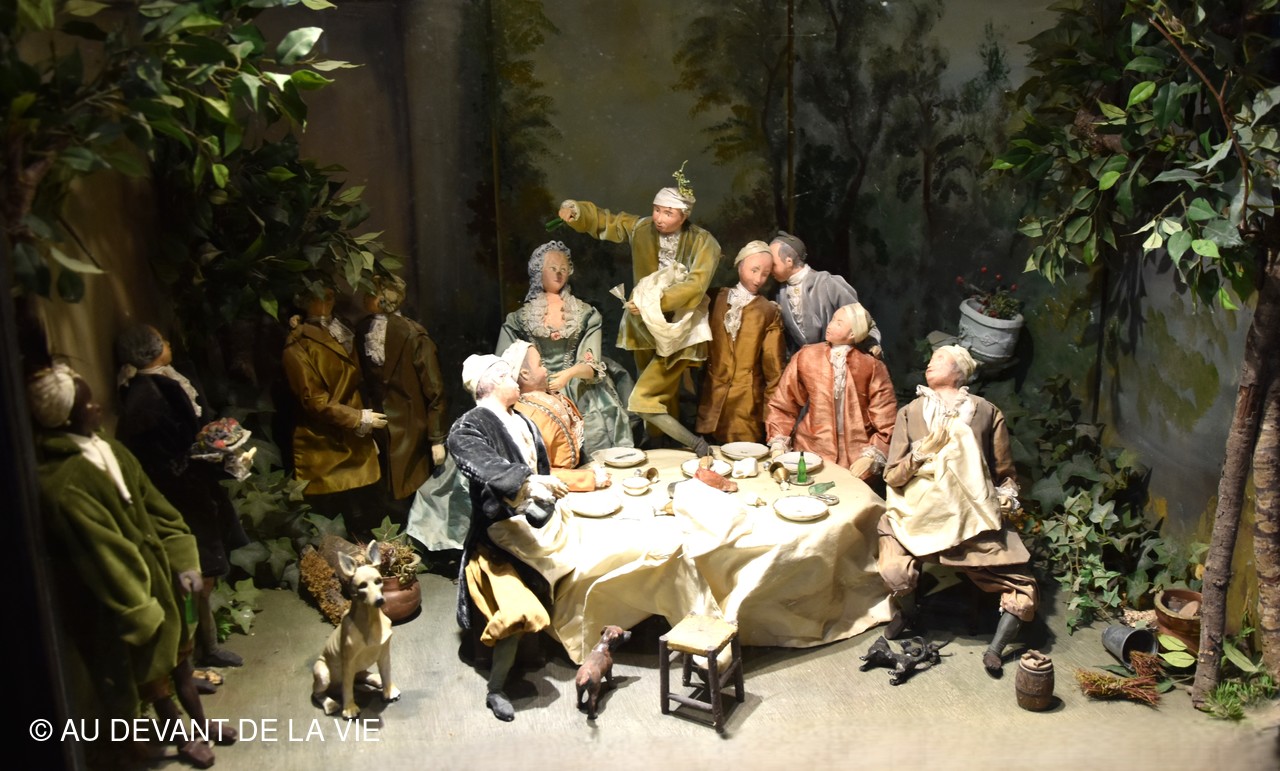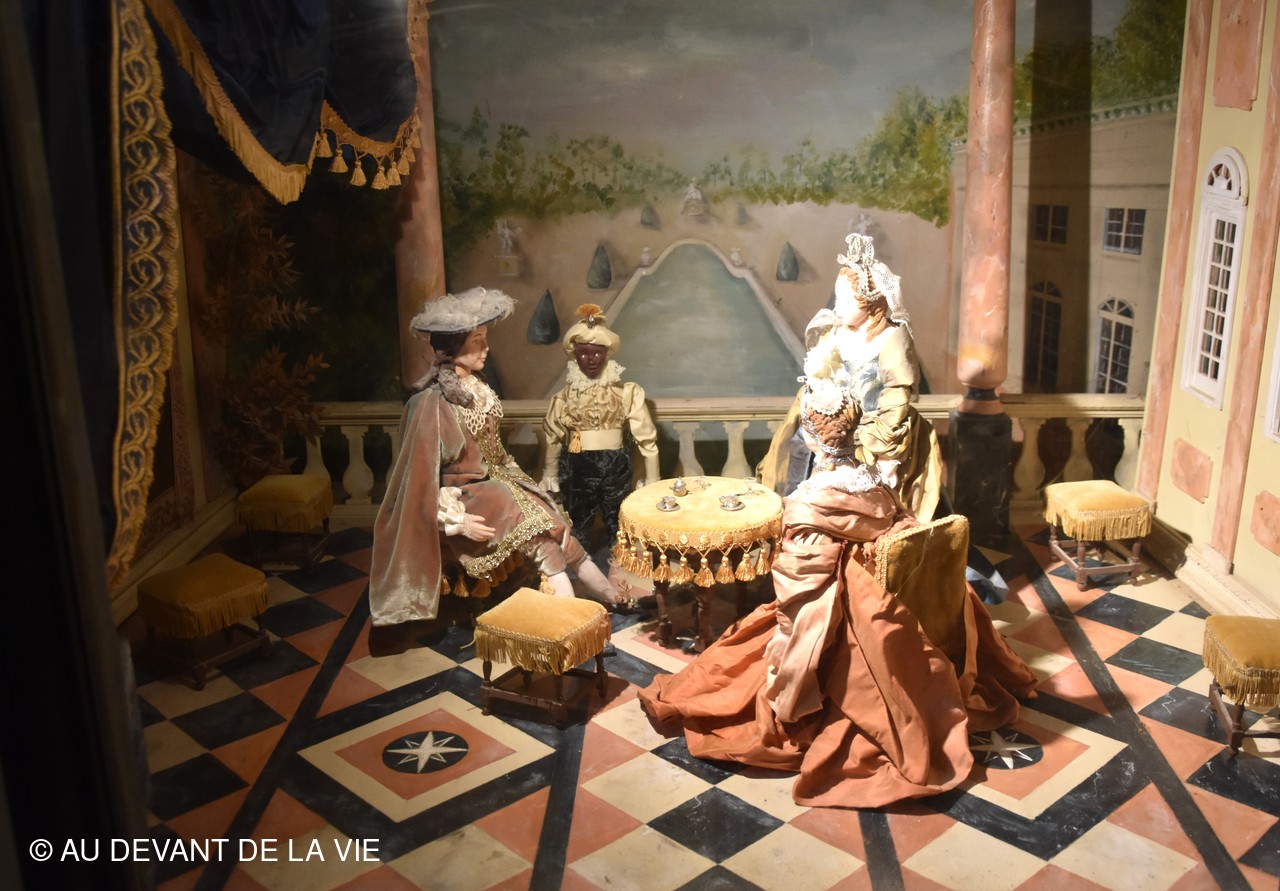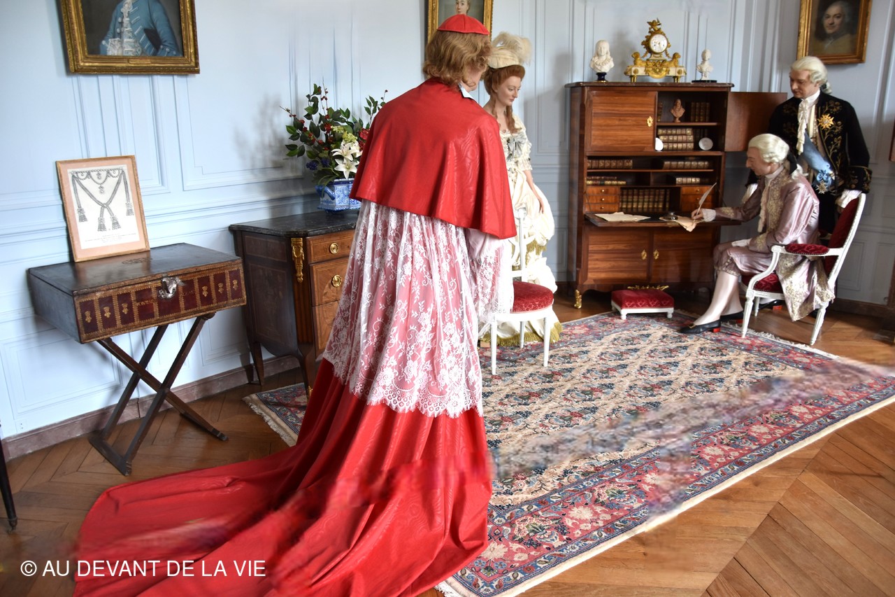 Chaque pièce traversée est occupée par des personnages en cire trés réalistes et évoque des scènes de la vie courante au château.