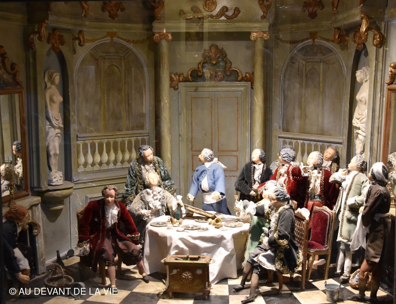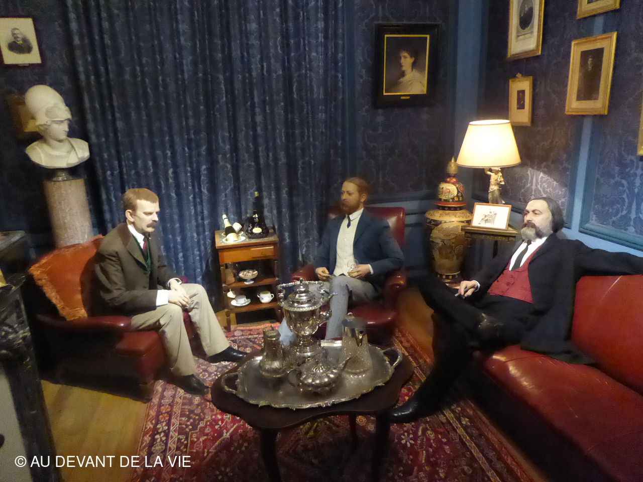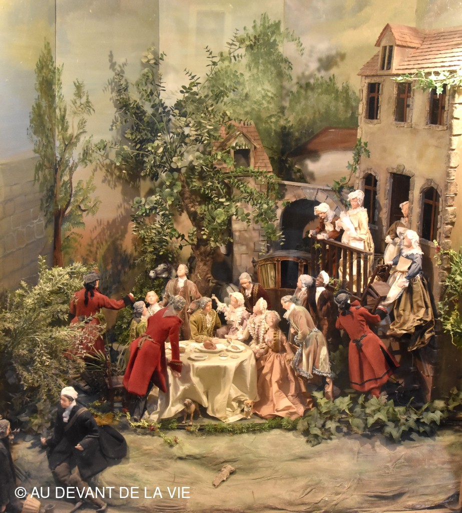Chaque pièce traversée est occupée par des personnages en cire trés réalistes et évoque des scènes de la vie courante au château.